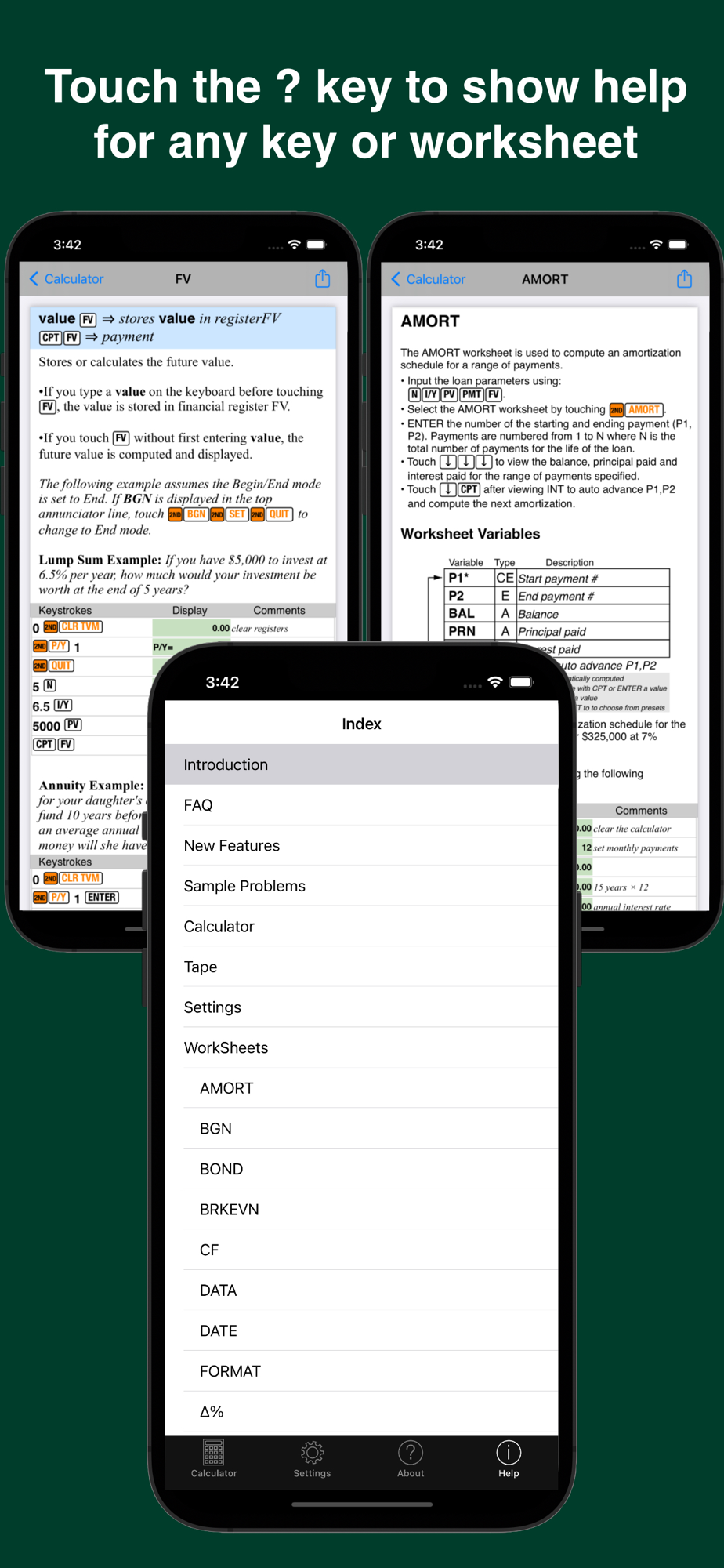 • 11 worksheets including bonds, breakeven analysis, cash flow analysis, dates, percents, depreciation, interest conversions, memory, cost-sell-margin and statistics
