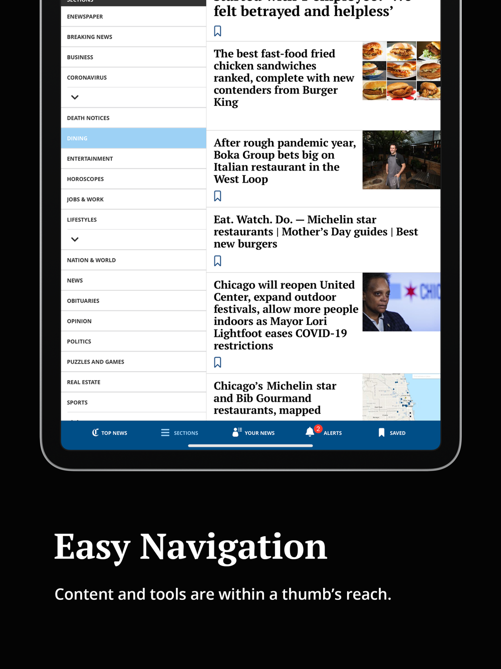 Now there's a simple, elegant and customizable way to get essential Chicago Tribune news, sports, business and entertainment coverage on your iPhone or iPad.