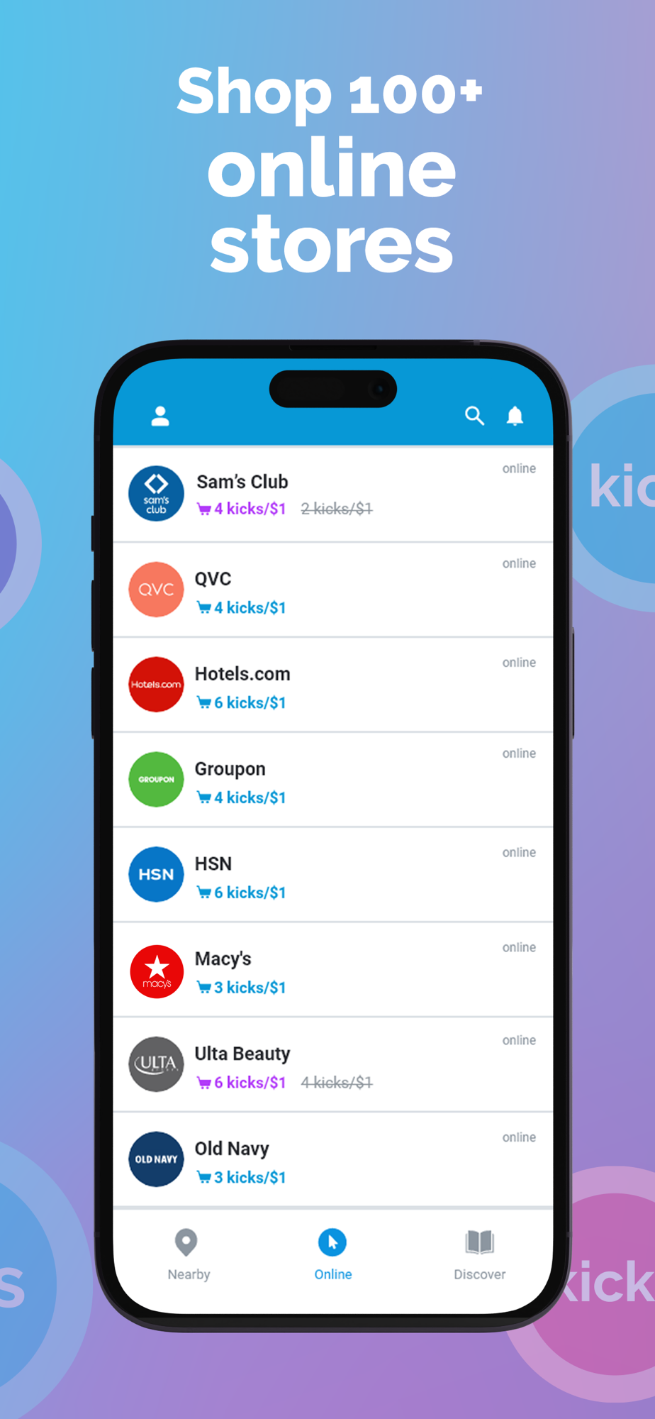 -Earn kicks for every dollar you spend at select partner stores when you shop with a linked credit card. This way you can earn points for the shopping you already do!