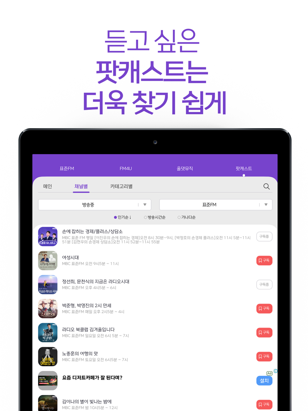 1. 표준FM, FM4U, 올댓뮤직 실시간 청취 및 보이는 라디오 시청