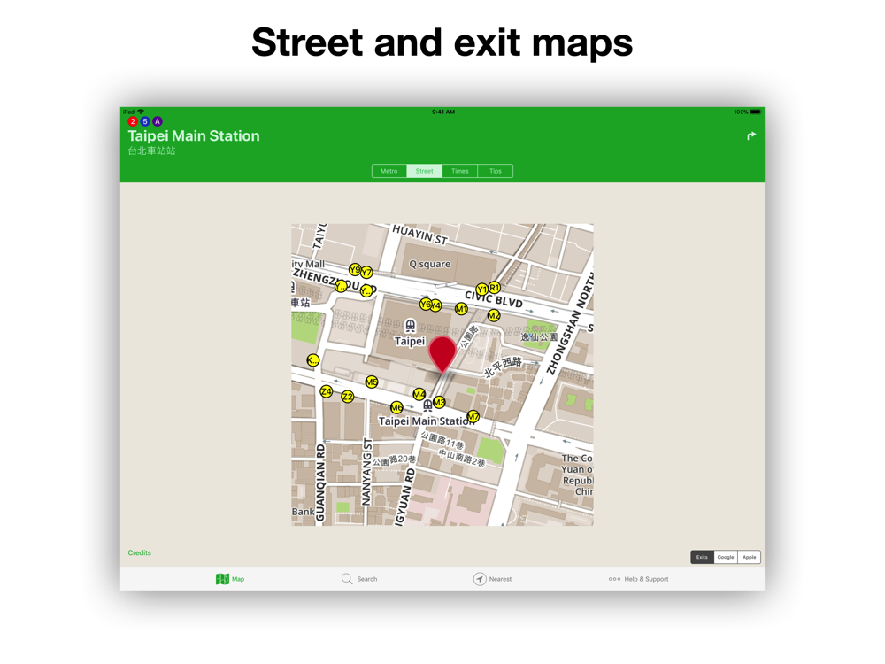 Recommended by CNN and Lonely Planet, this is Taipei's best subway map! Up-to-date with all the metro lines; Works offline; Routeplanner, GPS, Street maps; English and Chinese included.