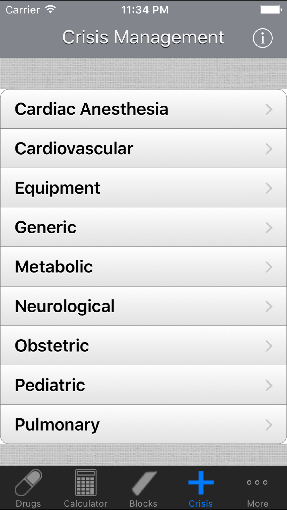 Find how to manage a crisis (Cardiac, Metabolic, Neurological, Obstetric, Pediatric, Pulmonary etc.). Check a Lab value!