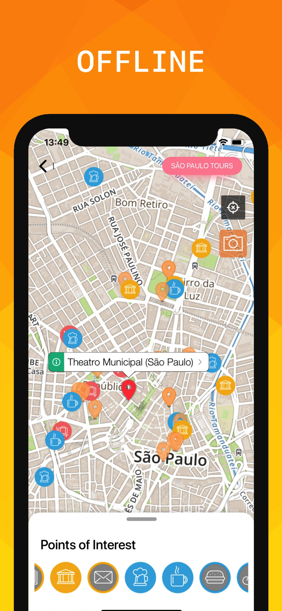 AUGMENTED REALITY, unlike other tourist guides you will be able to discover the city with the best iPhone and iPad tool - AR - Just click on the AR button, turn yourself 360° and view on the screen where the best spots are and how to find them. You can also scroll up and down to view the closest and furthest attraction. Slide through the tutorial for more tips.