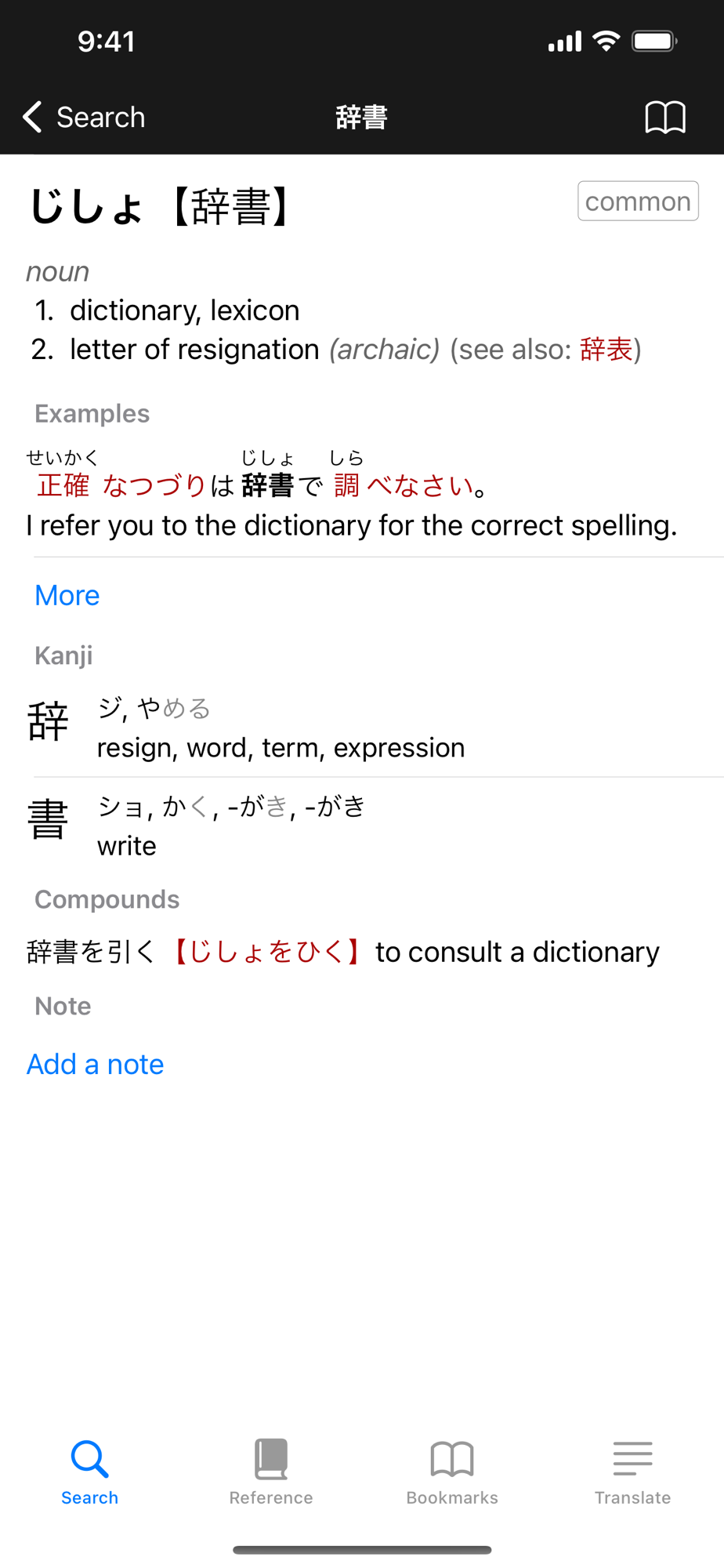 Midori is a comprehensive Japanese-English, English-Japanese dictionary. It's a perfect tool for Japanese learners, with 910,000 entries, 150,000 example sentences, and numerous features designed to enhance your Japanese learning experience.