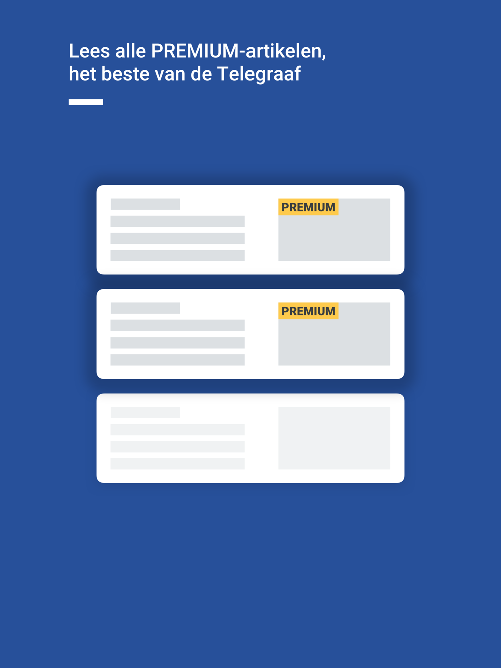 De PREMIUM-artikelen zijn toegankelijk voor abonnees met een PREMIUM, digitaal en een combi abonnement op De Telegraaf. Abonnees met een print abonnement kunnen hun abonnement uitbreiden tot een combi abonnement met toegang tot de digitale producten.