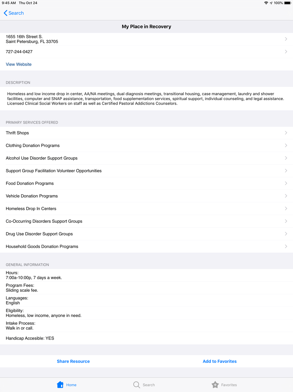 + Save resources as favorites for easy viewing later or save resources to your address book