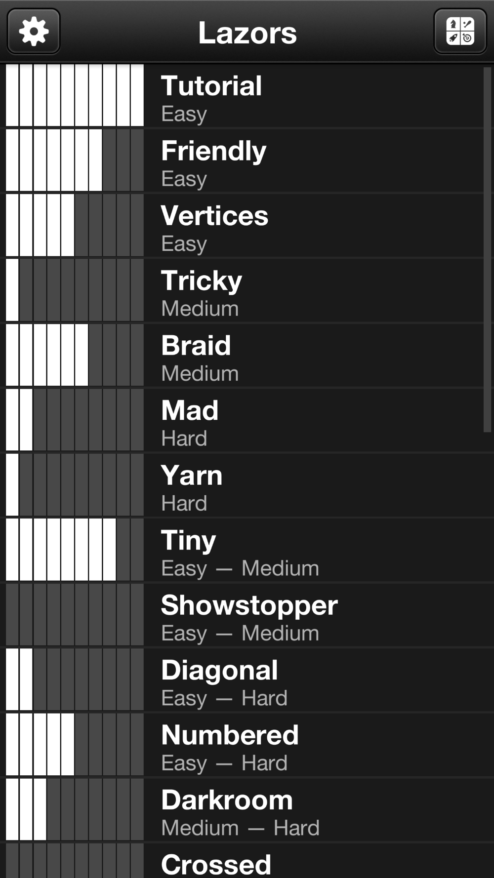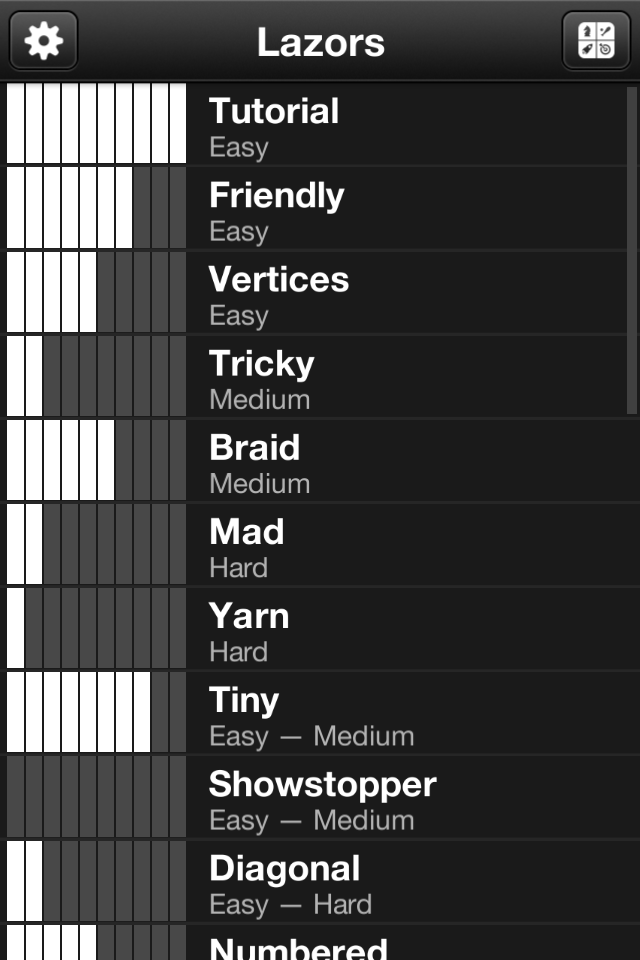 Lazors is a puzzle game of lasers and mirrors offering more than a hundred levels, ranging from easy distractions to hard challenges.