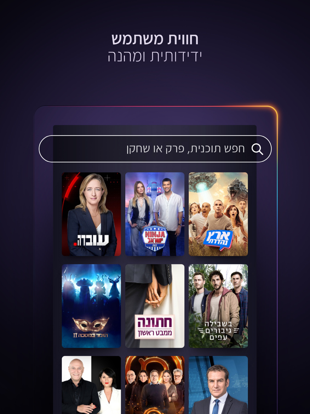 • Live broadcasting – Israel's television, brought to you with the advanced, quick, innovative viewing interface you deserve!