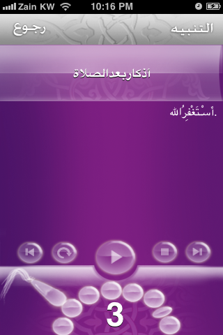 • تكرار الملف الصوتي بما يتوافق مع عدد مرات تكرار الذكر.