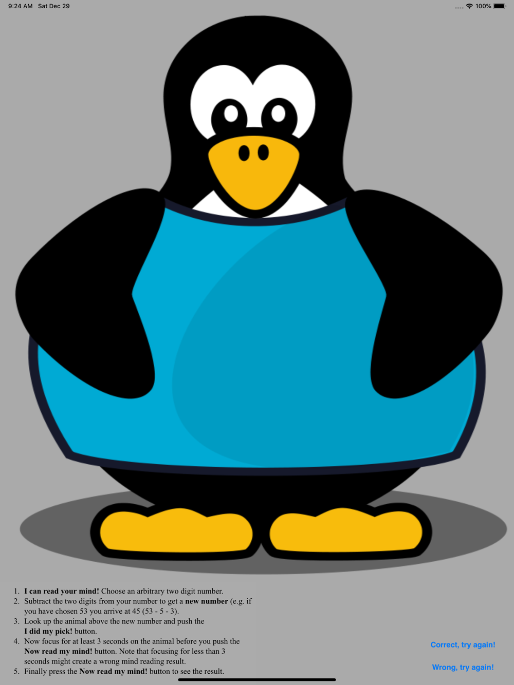 Focus on an animal and this app will tell you which it was. Impress your friends and maybe you figure out how it works.