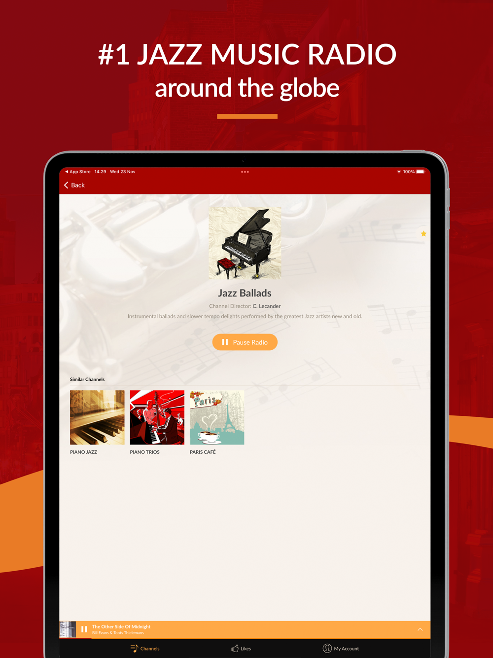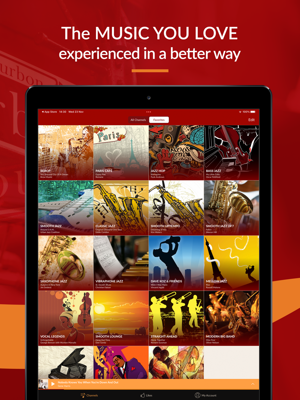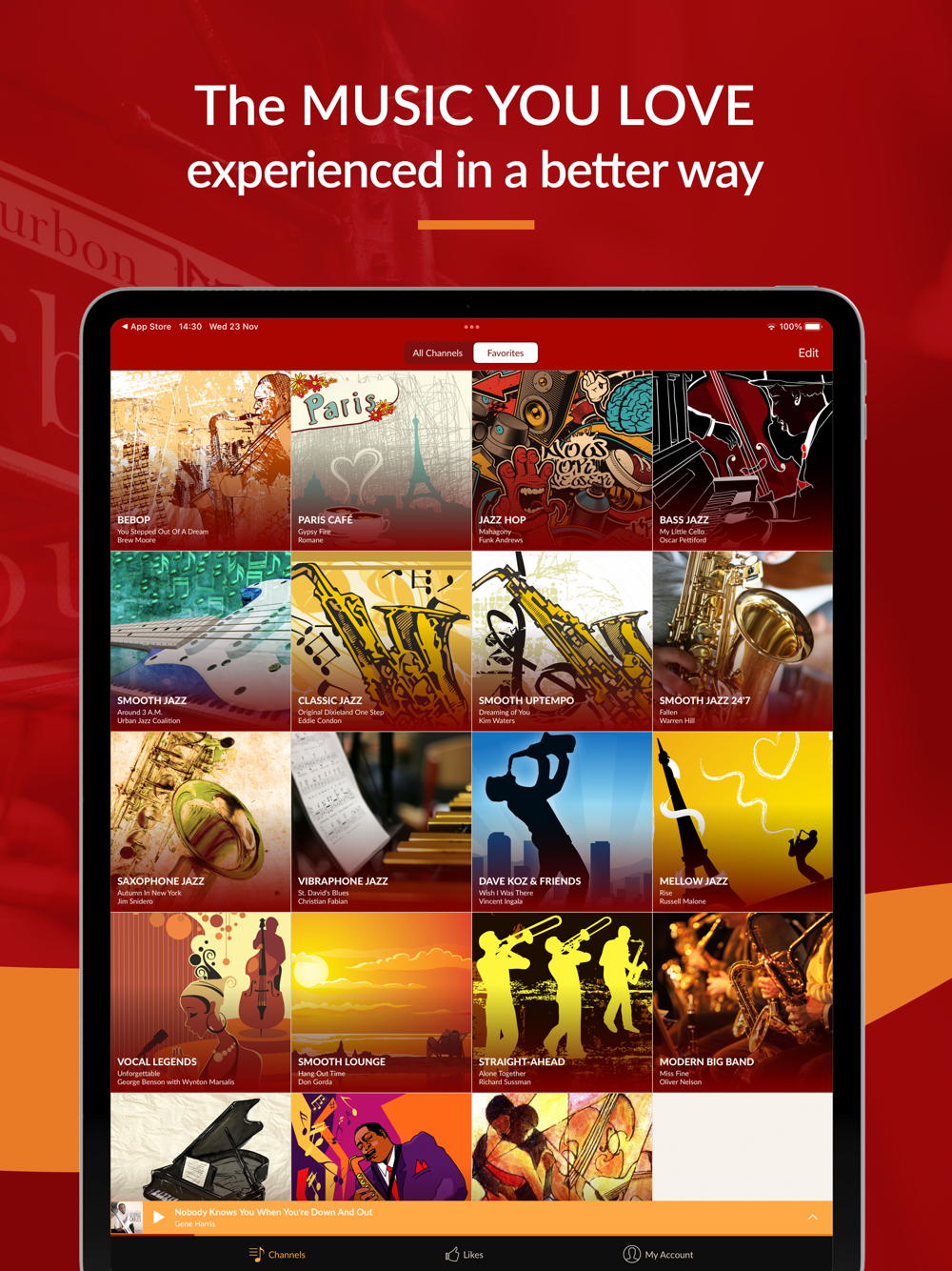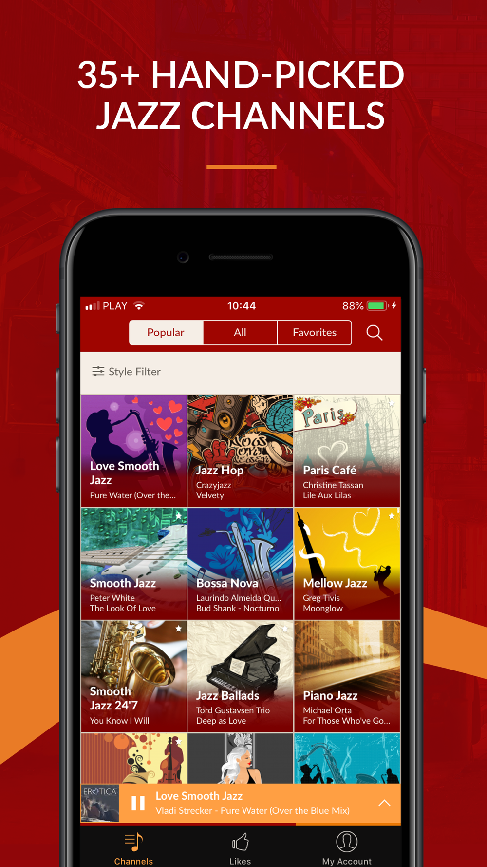 - Listen to 35+ hand-programmed jazz music channels