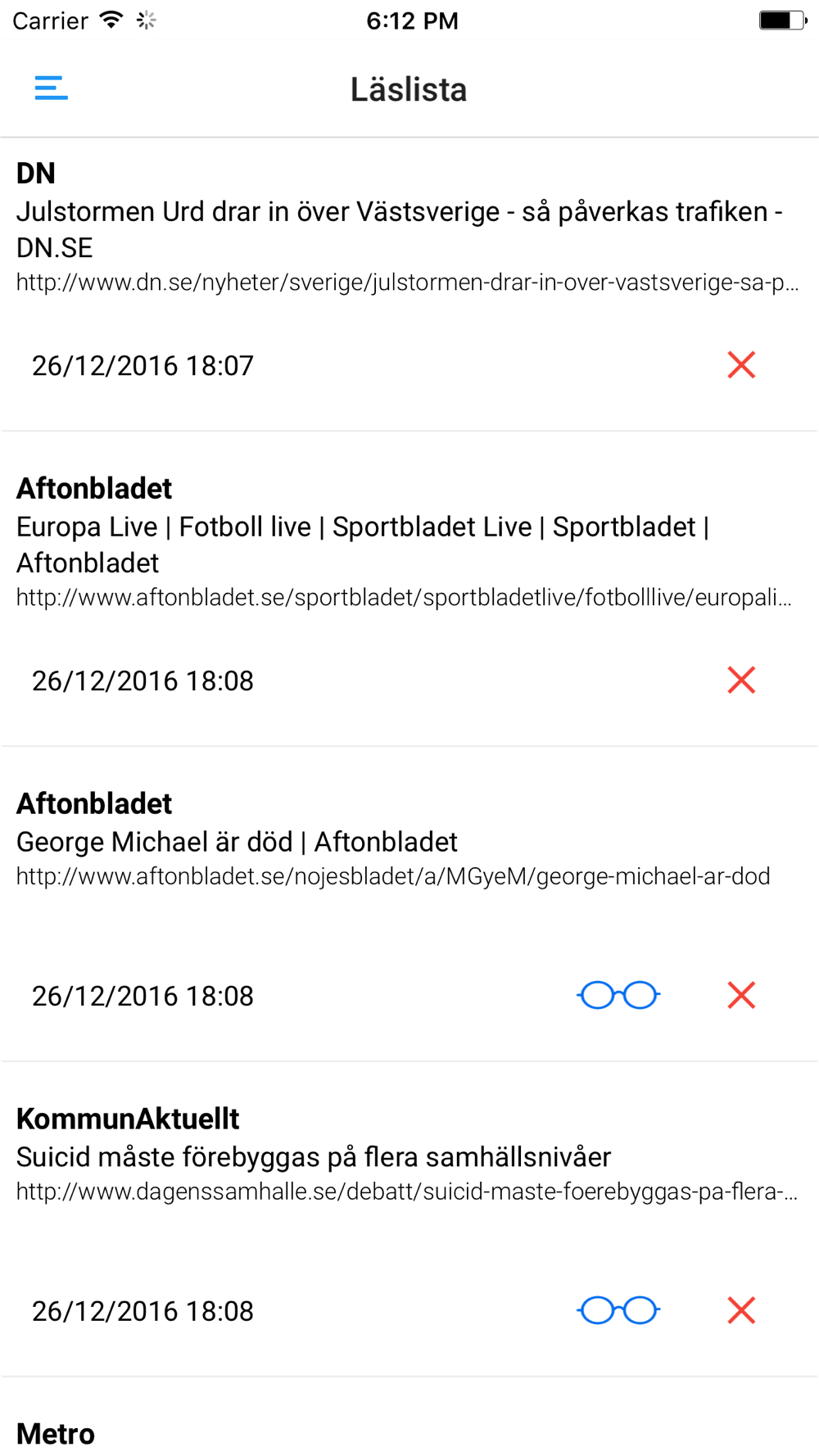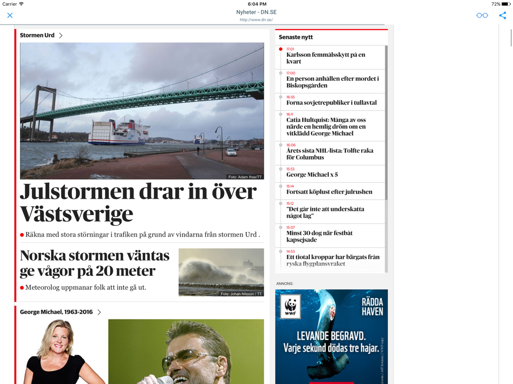 Dela nyheter och artiklar med e-post, Facebook och Twitter.
