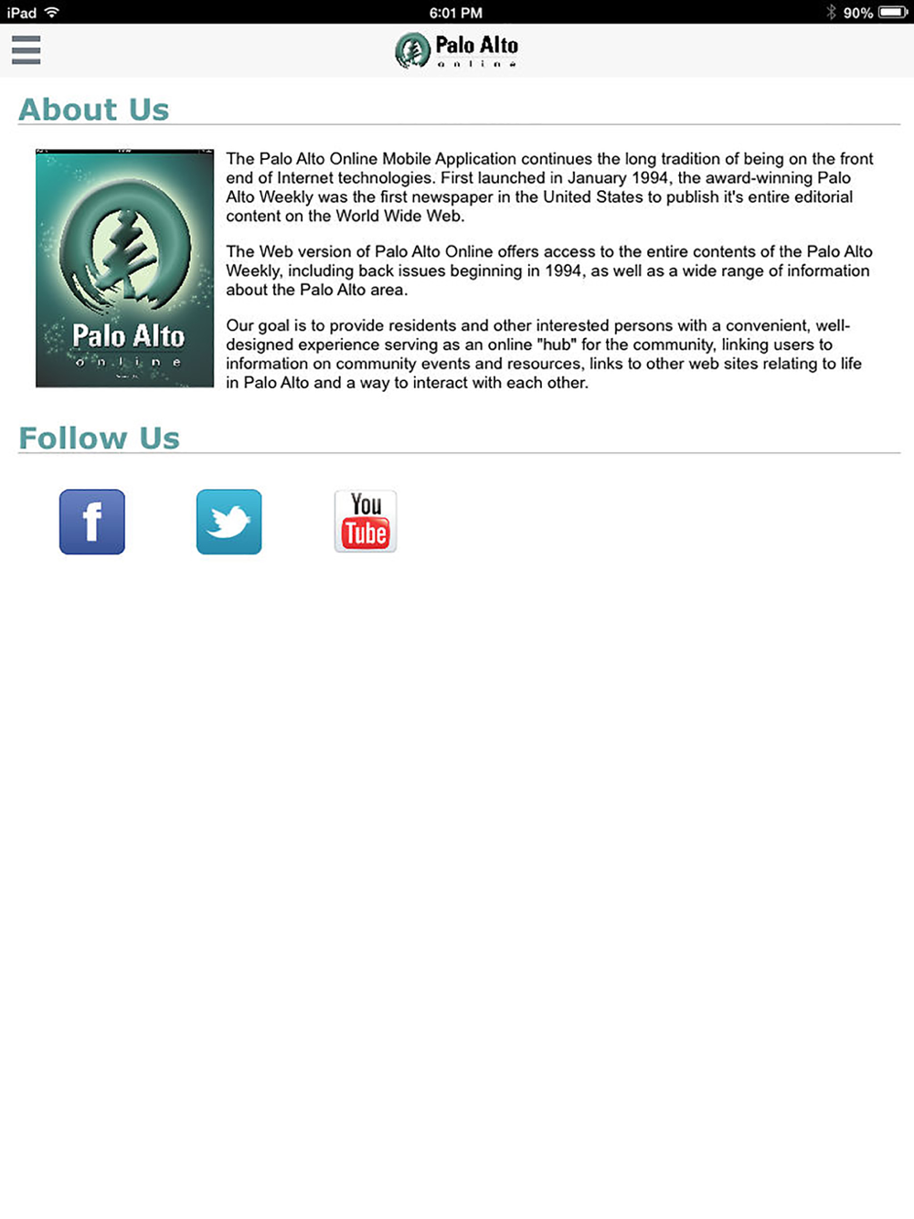 • Real-time and easy access to Palo Alto Online's Twitter and Facebook feeds