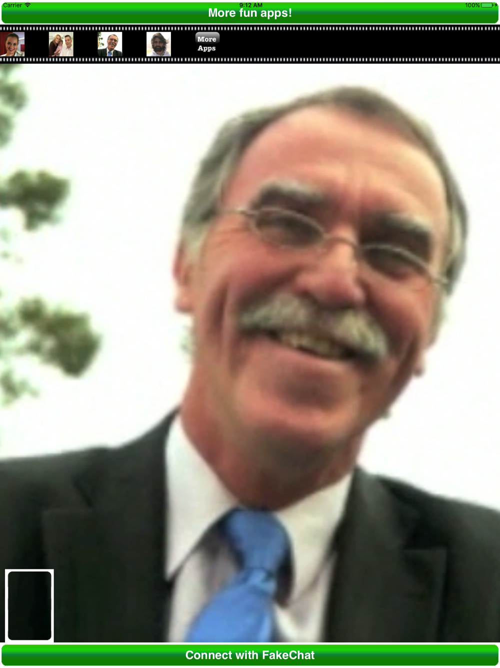 For entertainment purposes only. Feeling left out because you can't videoconference? Relax, there's FakeChat! FakeChat is a simulated video chatting interface that allows you to pretend to communicate with that special someone! Customize your own 'self portrait' by selecting an image from your photo library. Select from assorted video models and 'connect'! Touch the video to hear a random audio clip! TIP: Launch the phone or a VoIP app, enable Speakerphone, then run FakeChat and "talk" to your contact! PERFECT for April Fools, filming movies and TV shows, YouTube skits, etc.! [for entertainment only & does not provide true video calling functionality]