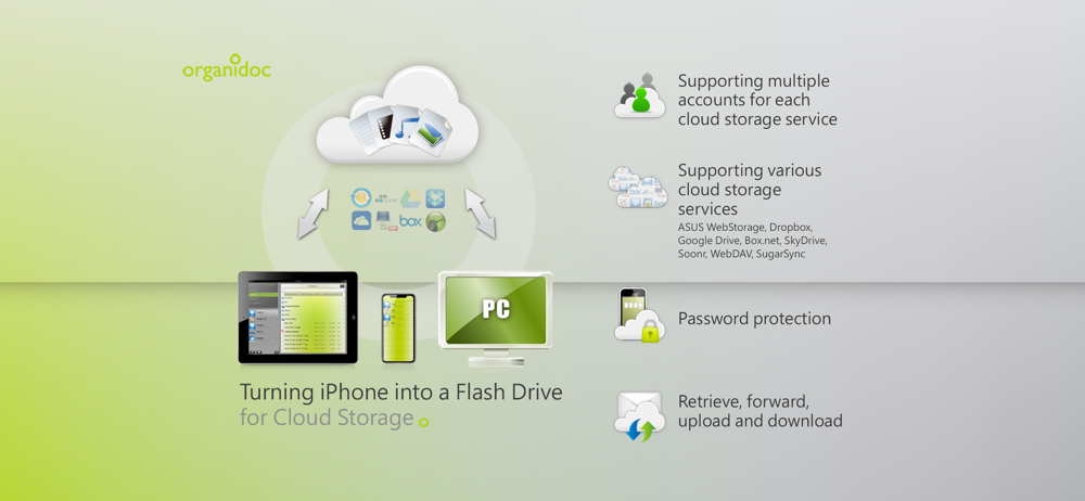 • Tightly Integrated with iCloud: Just tag files, photos or videos with iCloud icon and then they will be automatically stored to iCloud and pushed to your iPad's OrganiDoc HD for sharing.