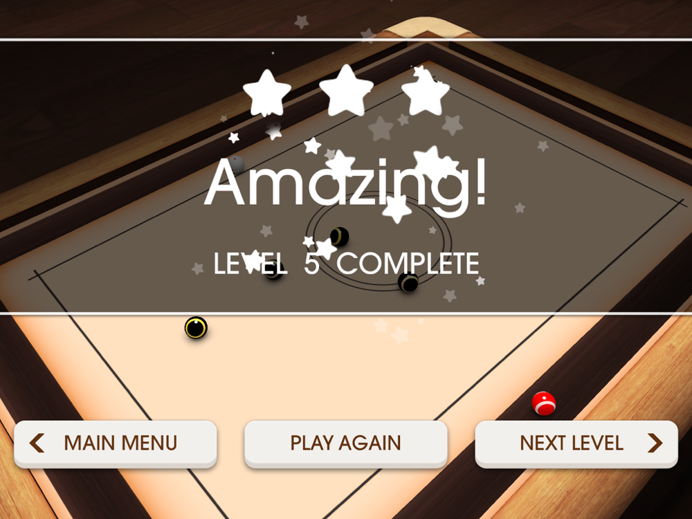 Here you have to get all the Red balls out of the board, but you have to keep the Black balls. If a single Black ball goes out or the Cue Ball goes out 2 times, the game will be over.