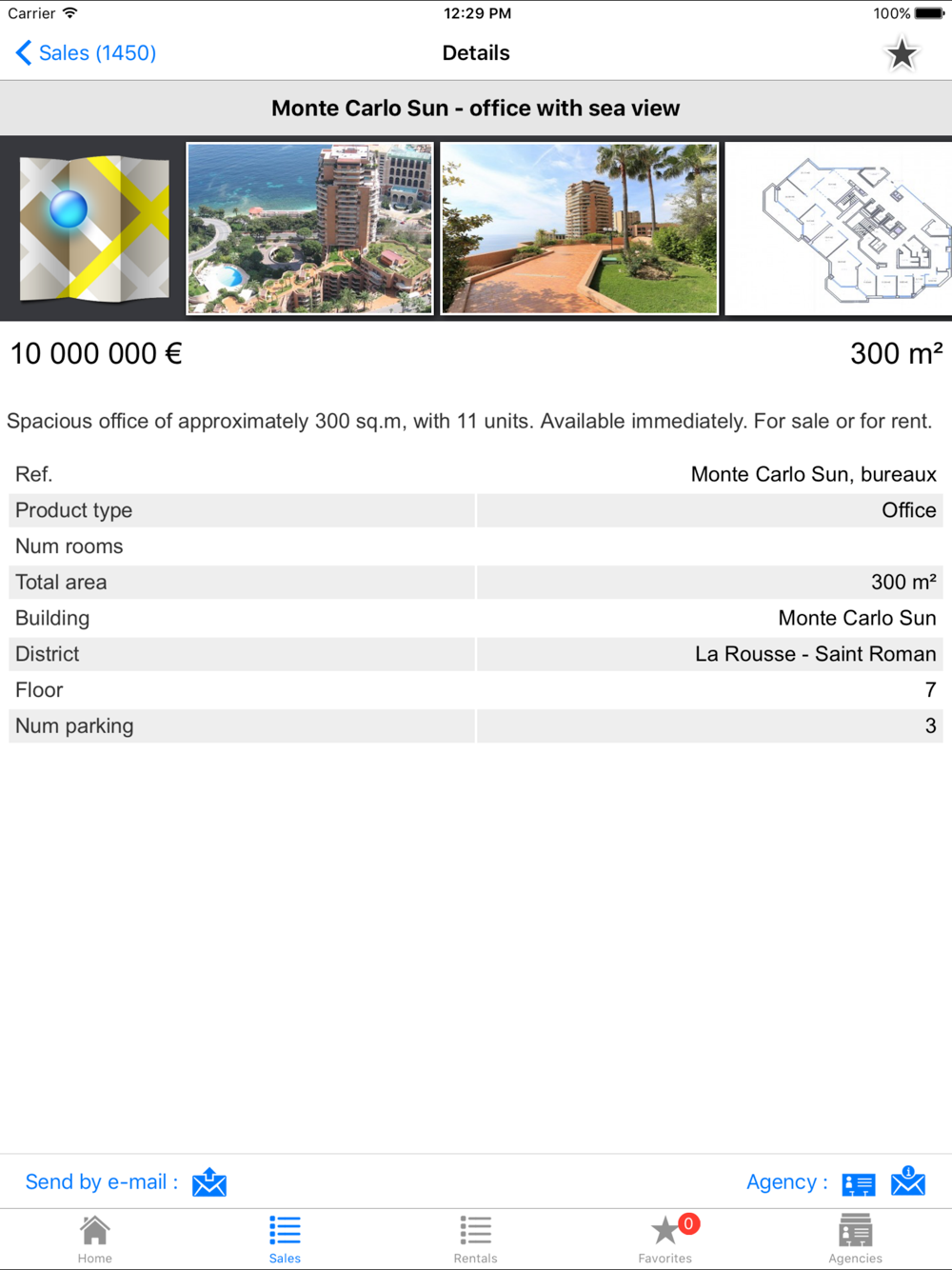 We provide you with the necessary tools to help you find what you are looking for, including a search engine in function of price, area, type of product, number of rooms and location, as well as buttons to reorganise the list of offers in terms of price/area/date and the possibility to save your favourite offers to later send them by mail directly to the agency.