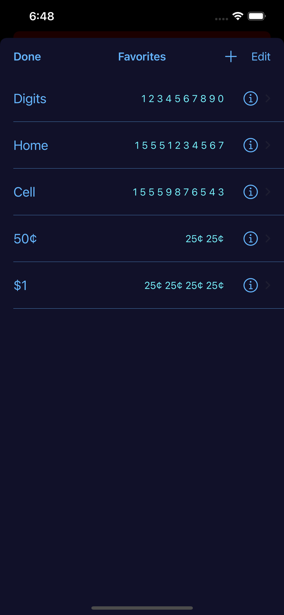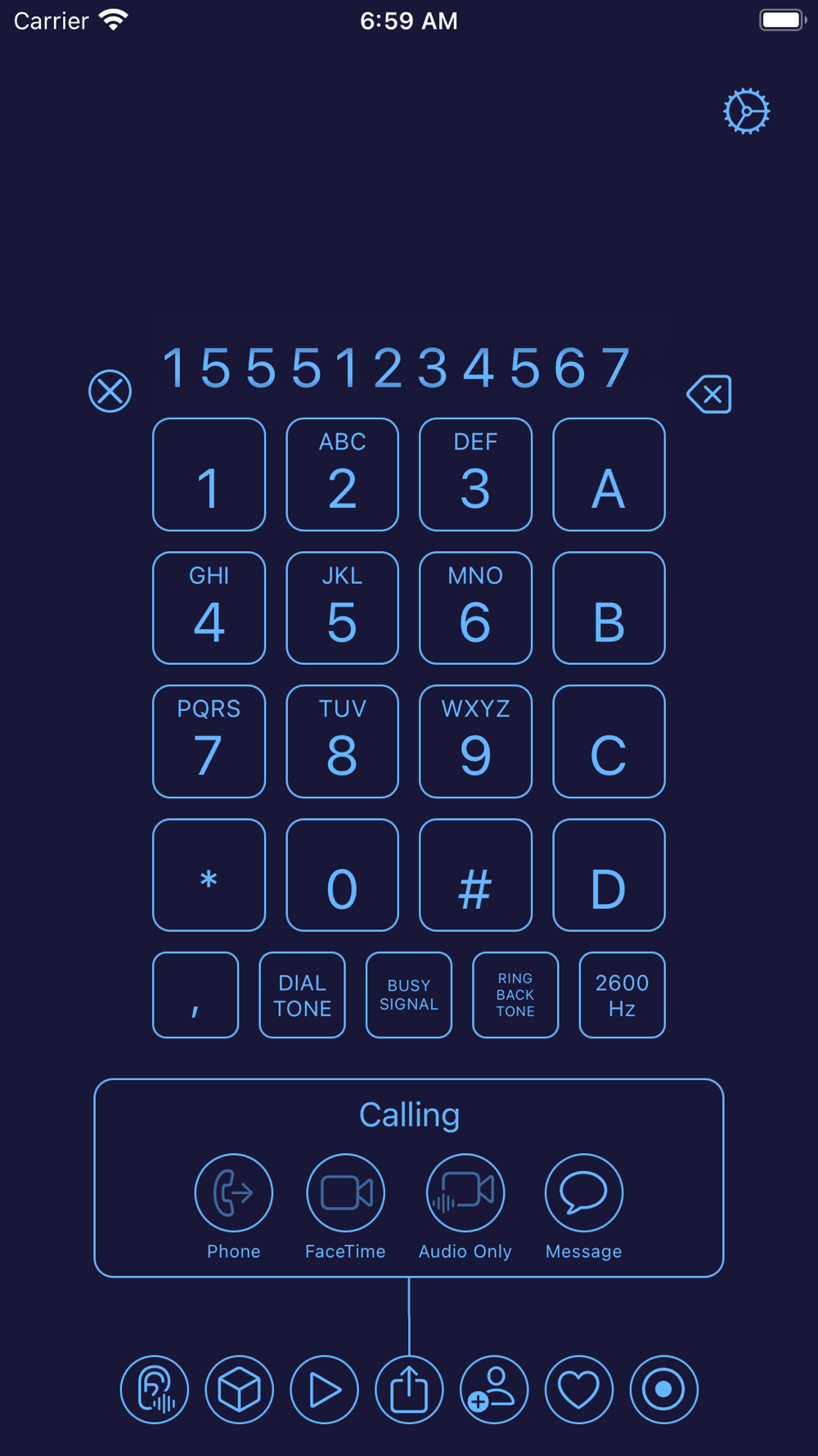 Blue Box is useful for entering numbers into touch tone operated systems such as an answering machine passcode or a dial-up service that requires the entering of several touch tones to navigate a menu system. Simply enter the numbers once and then play back the numbers into the phone's microphone with a touch.