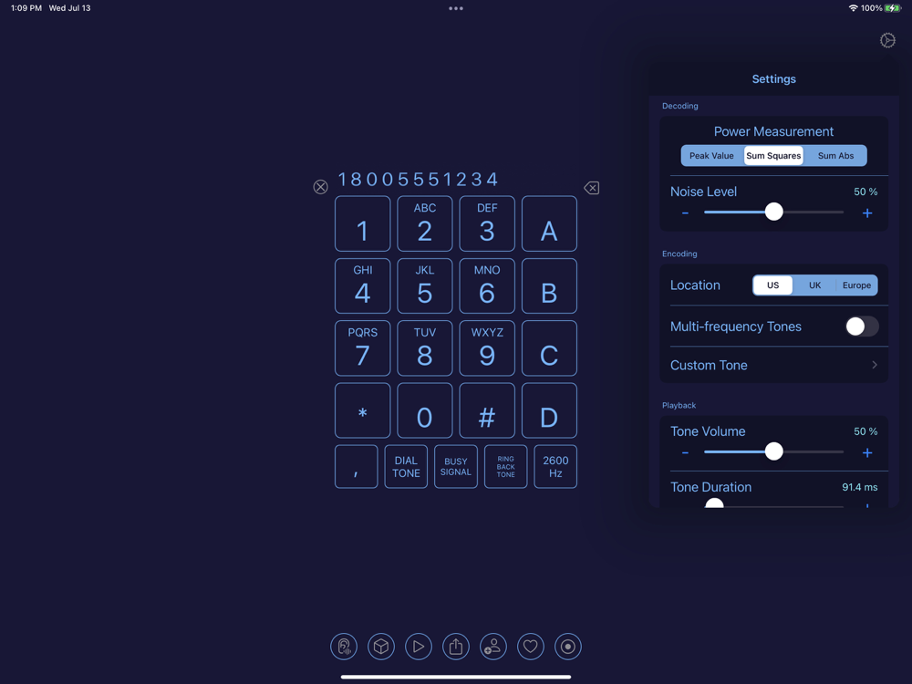 Generate tones by using the phone style keypad or decipher tones using the device’s microphone.