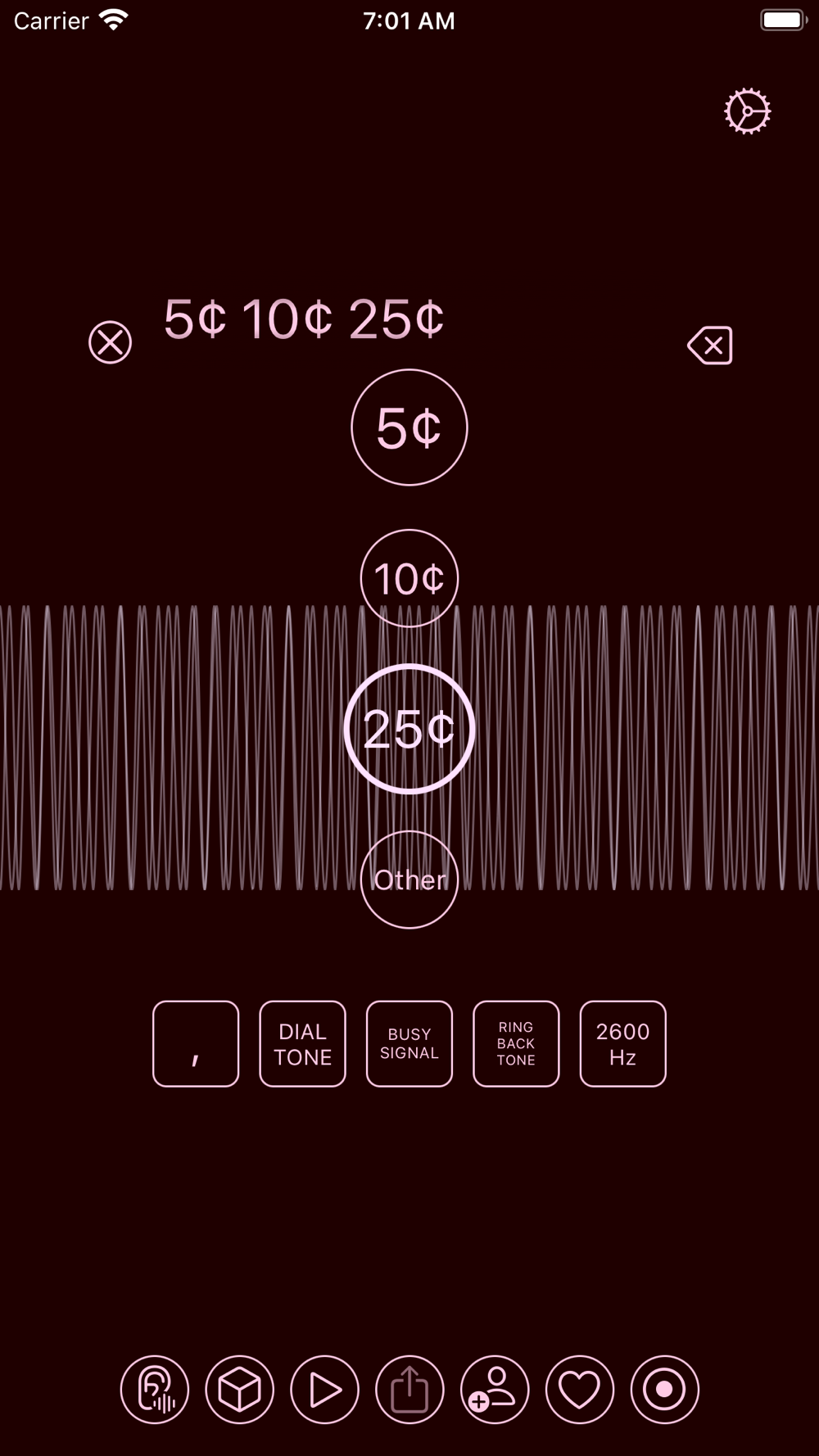 Use Red Box mode to play coin tone sequences, including 5¢, 10¢ and 25¢ for the US system and 10p and 50p for European systems.