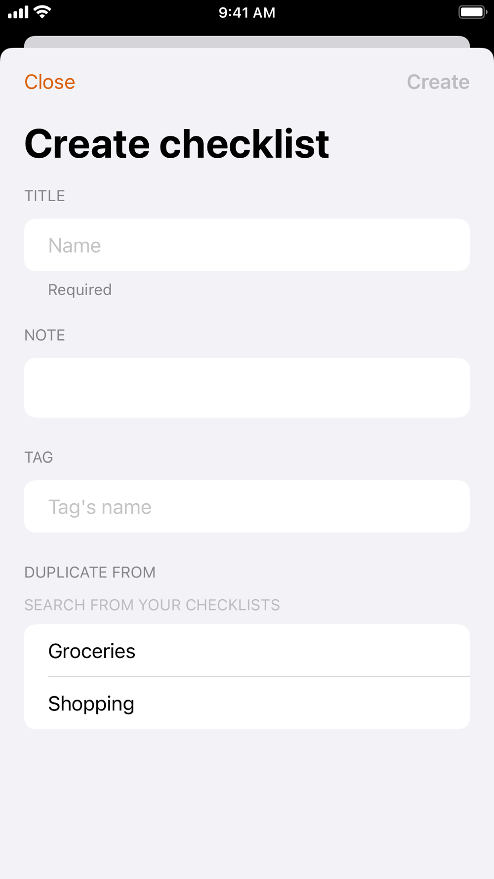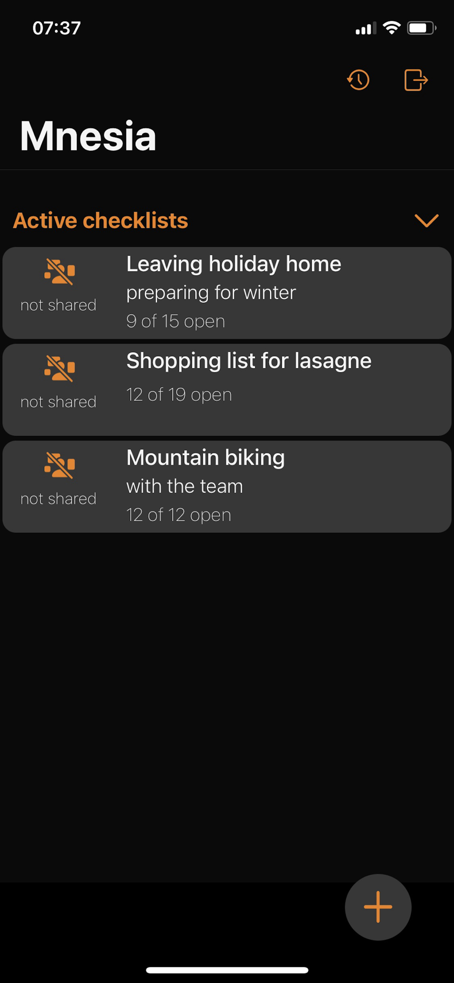 With Mnesia you can share checklists and collaborate on a shared checklist with your friends/family/colleagues/team mates.