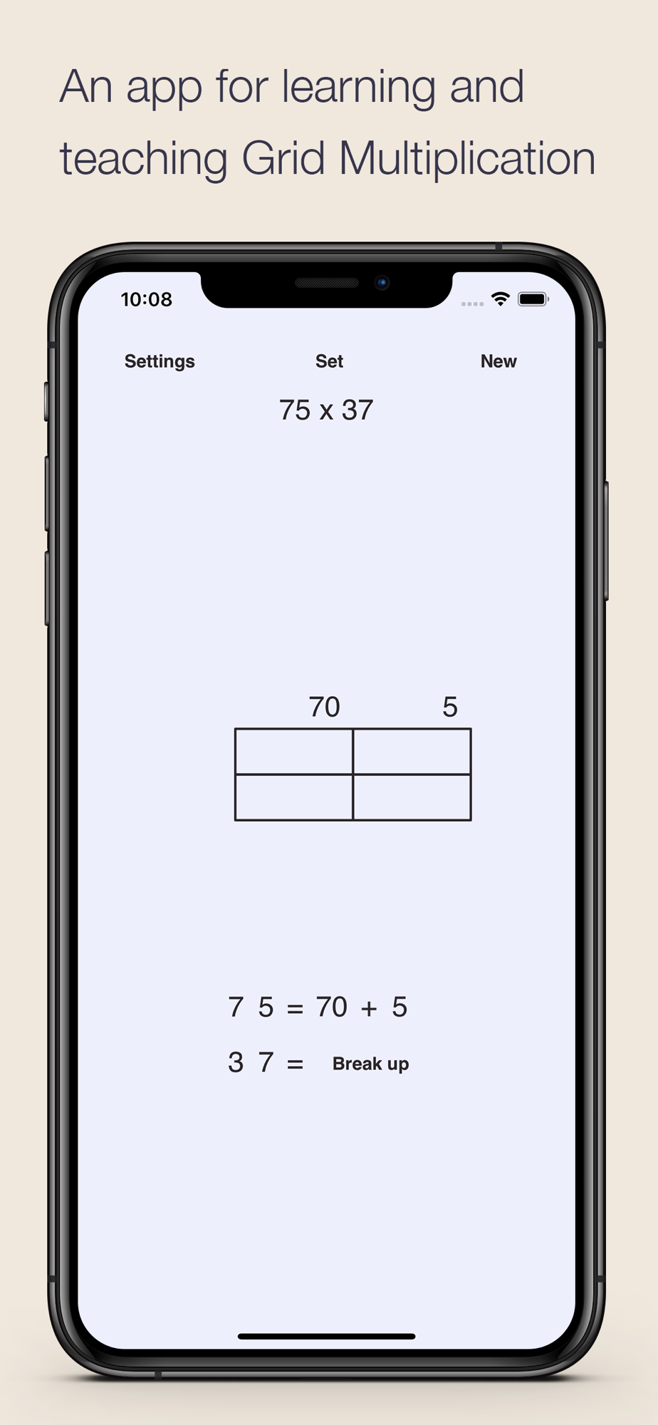 This math app can be used to teach and study the grid multiplication method. The app is easy to use and it has an intuitive interactive interface with customizable colors and other settings.