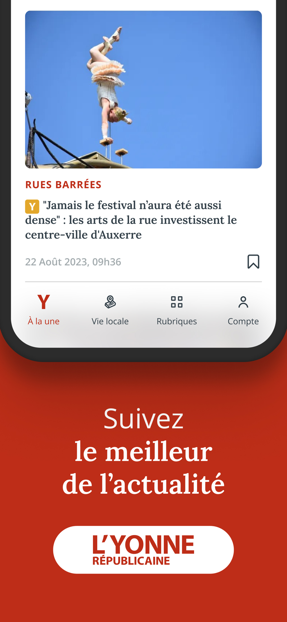 Avec l’application du journal « L'Yonne Républicaine », accédez à toute l'actualité en direct : actus locales, informations nationales, internationales et sportives.... Retrouvez en continu et en images toute l’actualité de l’Yonne et de la région Bourgogne.