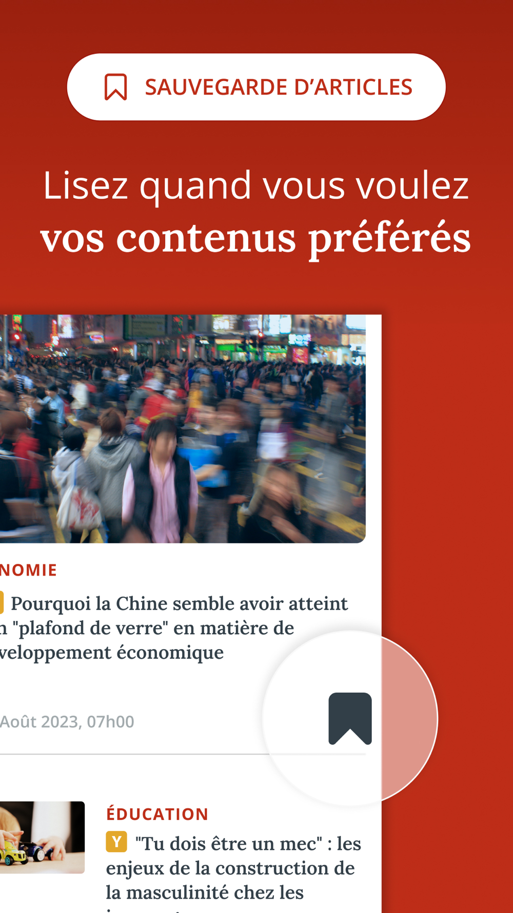 - Partagez vos articles préférés par mail ou sur les réseaux sociaux directement depuis l’application.