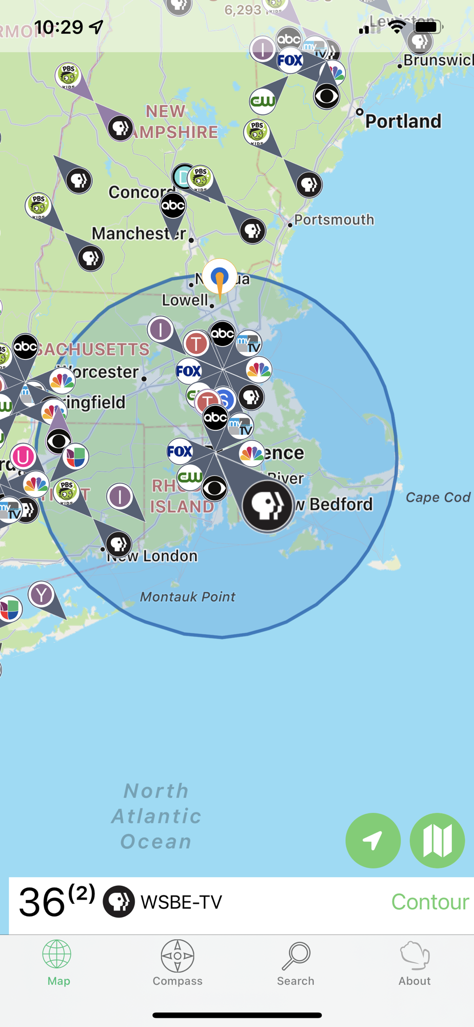 There is an alternate compass tab which shows the direction of stations within a 45 mile radius—given enough screen space—just look over your phone to see which way to point your antenna.