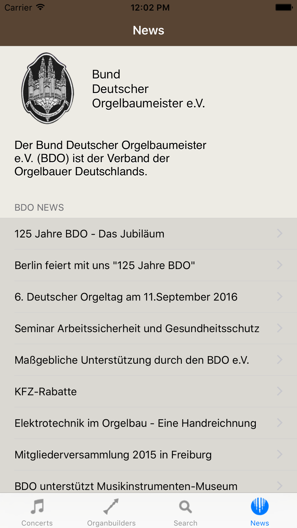 "Orgel" (German word for organ) gives you an overview wherever you are, which organ concerts and which exiting organs from BDO member workshops are available around you.