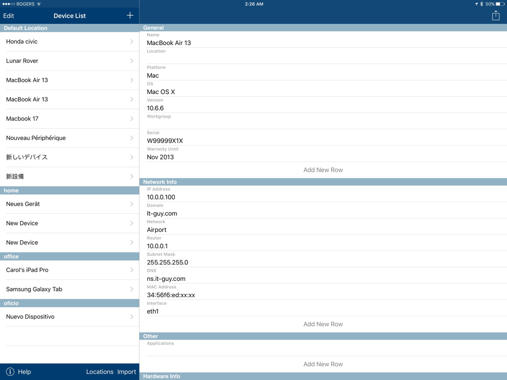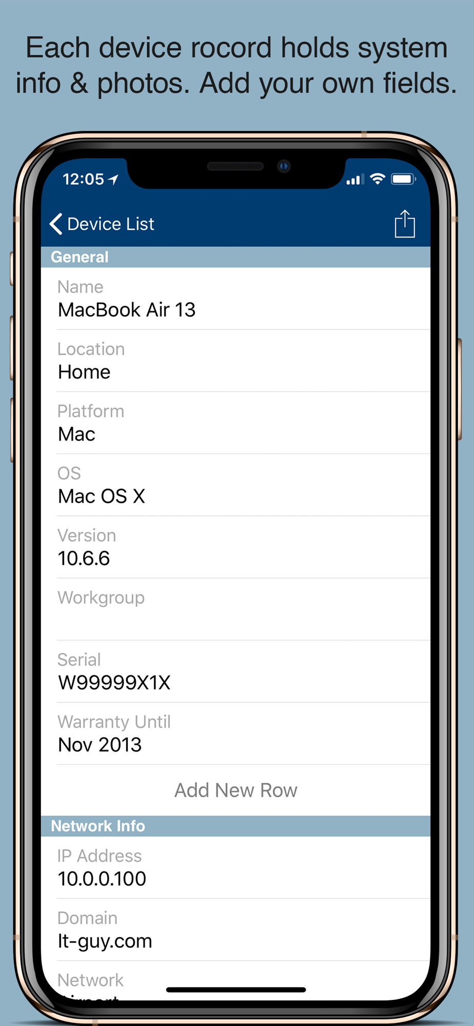 Becomes a quick resource and keeps track of any range of information. The app keeps track of the location, serial numbers, hardware specs, warranty info and more. You can carry the information with you as you travel around your workplace, in your pocket on the iPod, iPhone or in your bag on your iPad.