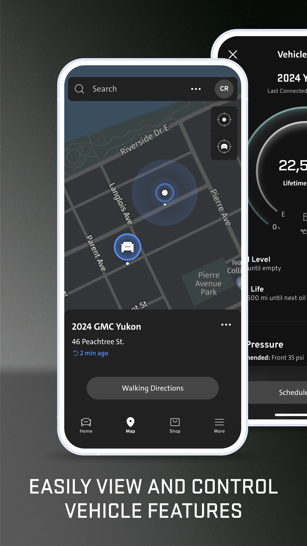 Check your vehicle’s status to monitor fuel level, oil life, tire pressure and more, making it easy for you to stay on top of your vehicle’s health and schedule service with your participating Dealer without leaving the app.