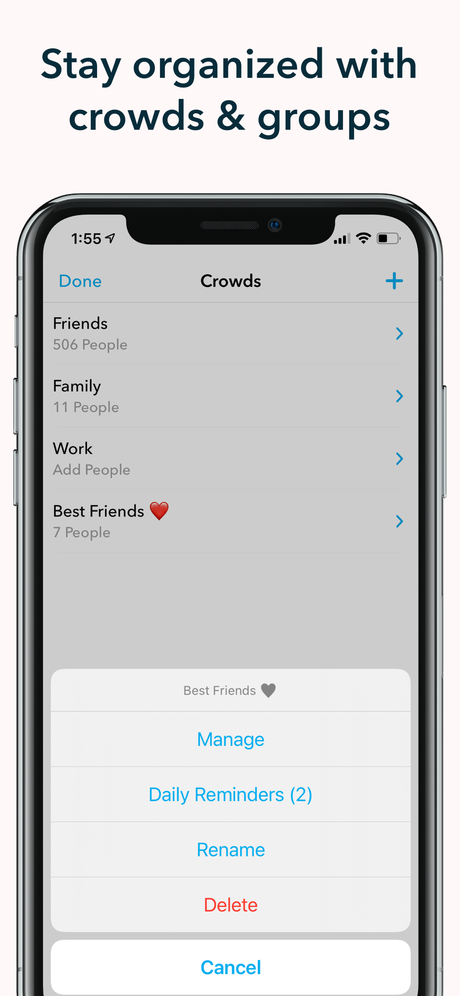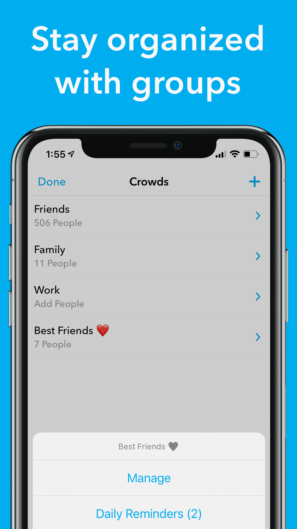 • Arrange your contacts into groups and tailor settings for each