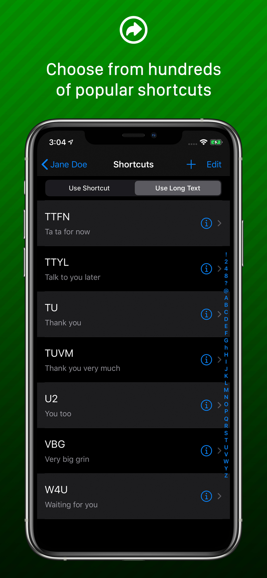 More than 100 Message Shortcuts - Common message shortcuts such as LOL for “Laughing Out Loud” and CUL8R for “See You Later” can be added to messages just like pre-made phrases. Shortcuts can be added, removed and modified.