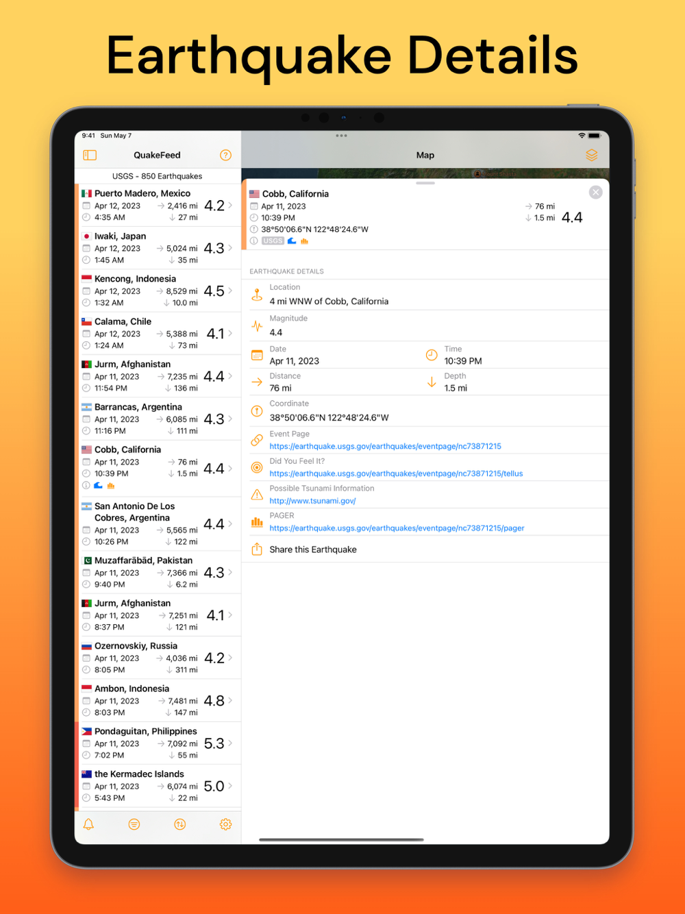 - Search, sort, and filter earthquakes