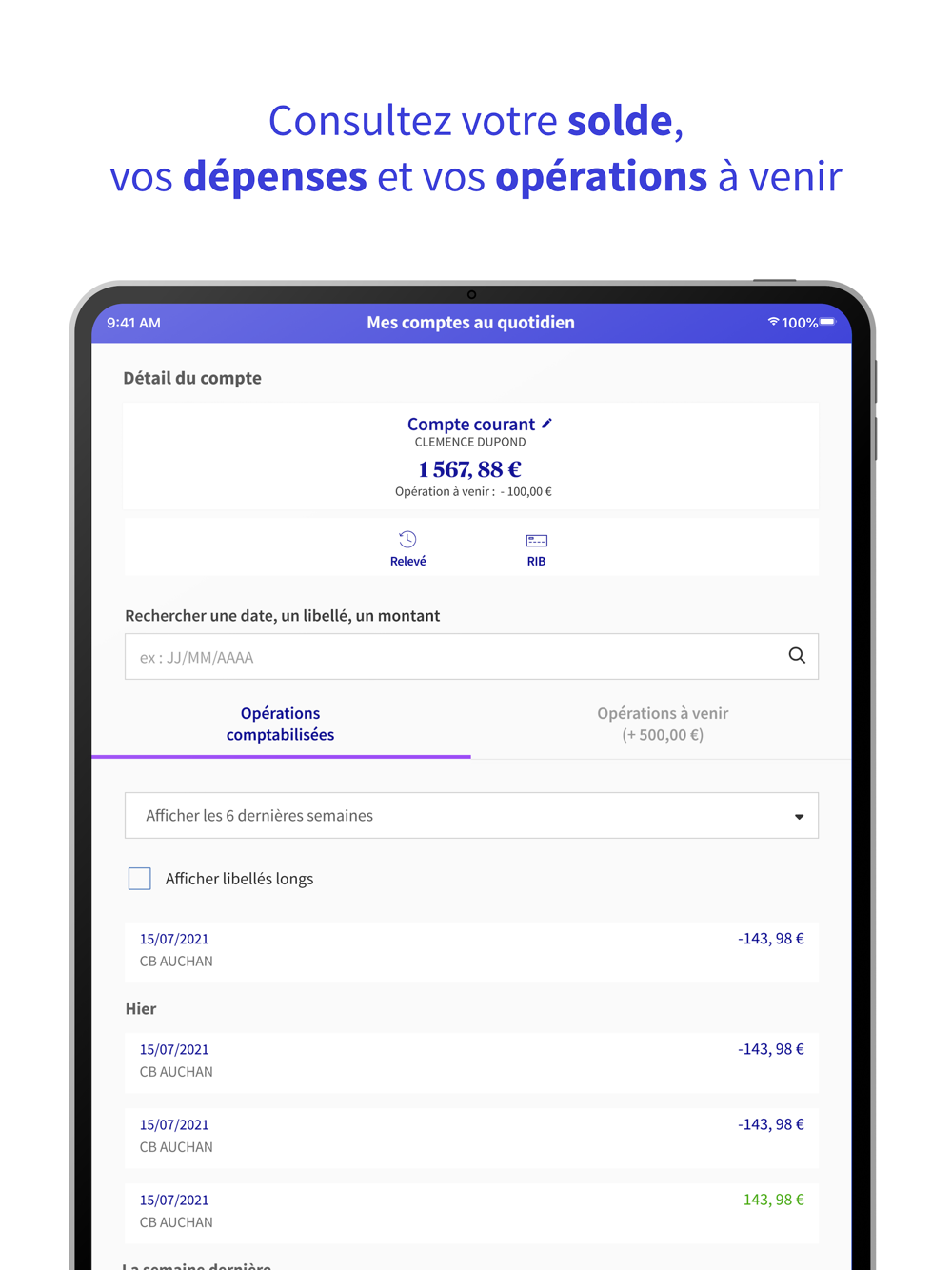 • Retrouvez toutes vos opérations sur vos comptes et cartes.