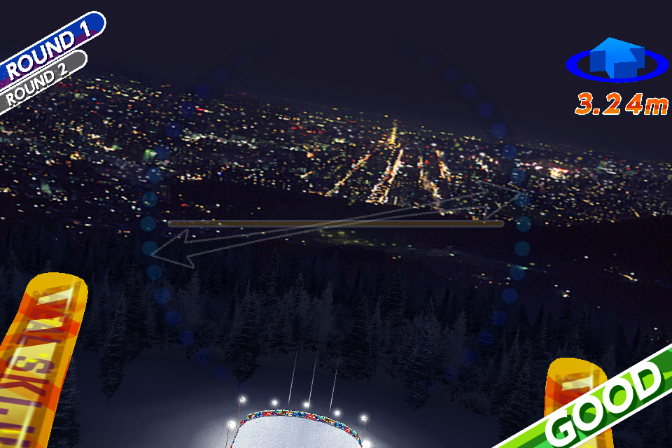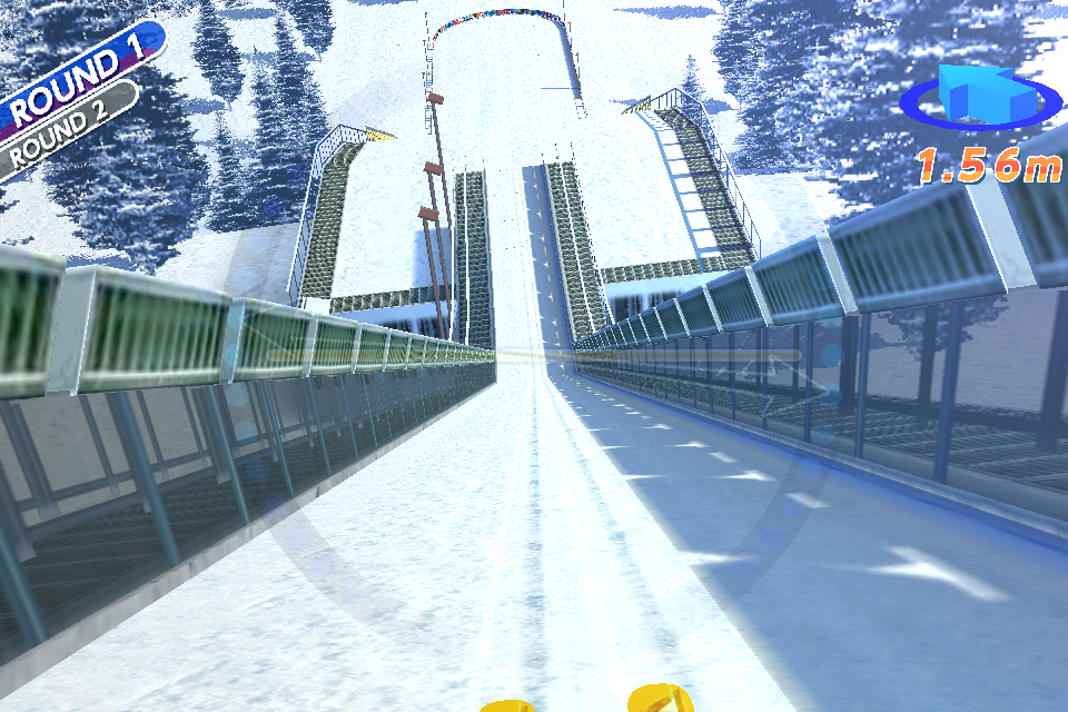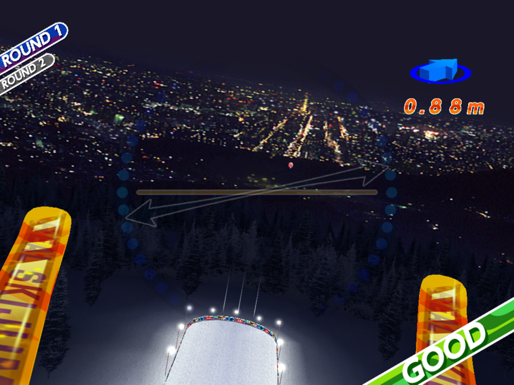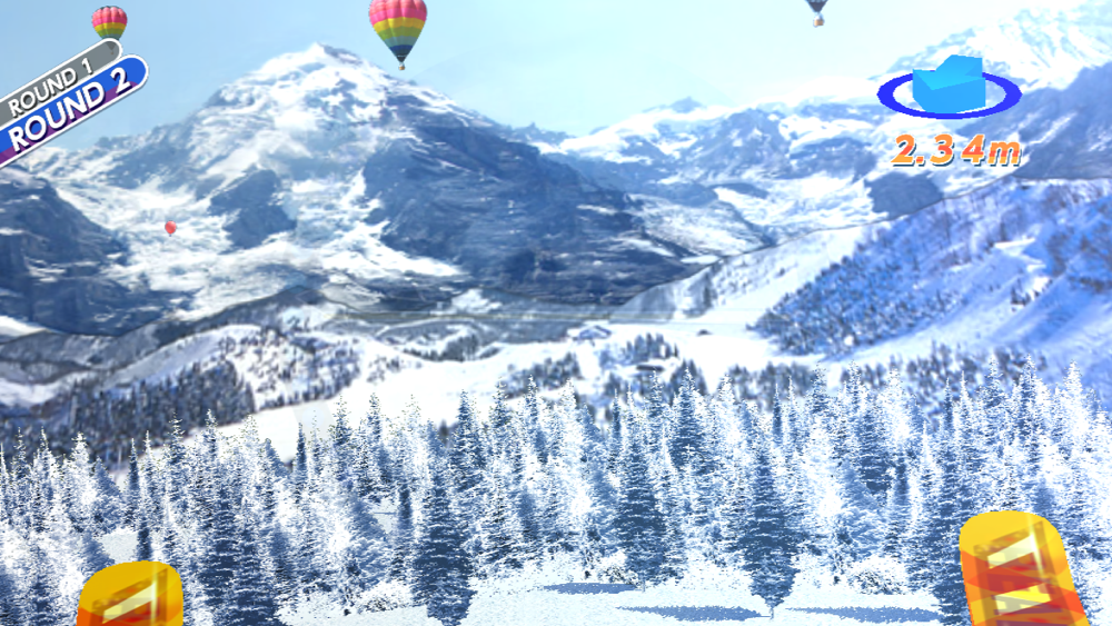 Playing is simple. Hold the device in both hands, and stand with your weight distributed evenly across both feet, posed if you were actually ski jumping. Get the timing right and push off with both feet.