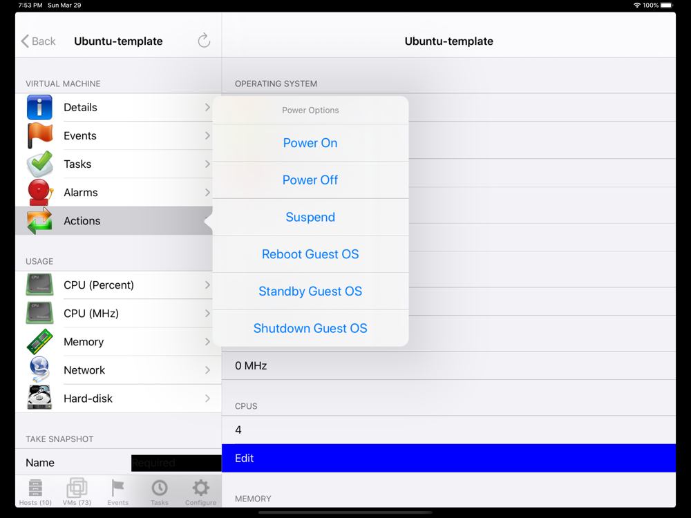 Connect to your Vmware® vCenter or to your ESX(i) server and take control of your Virtual Machines on the go!