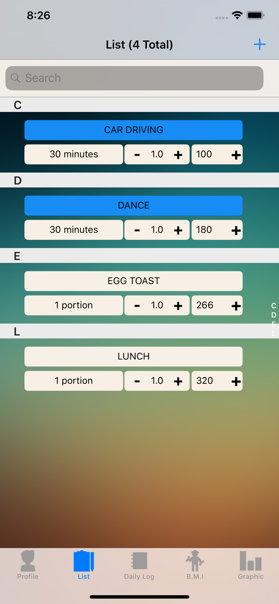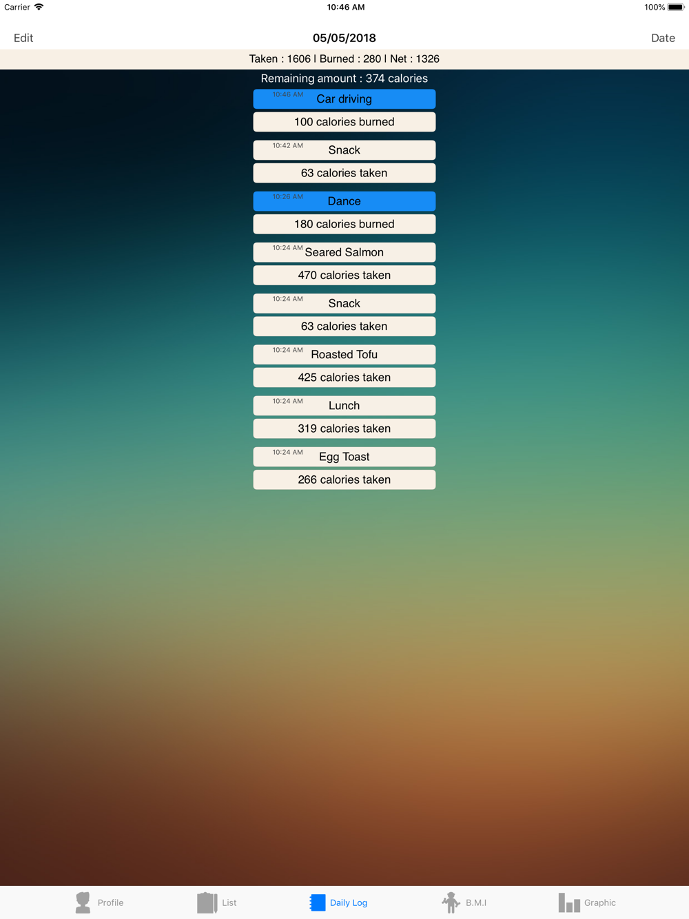 When you log the foods or activities in list page they are all saved into the selected date in Daily Log page