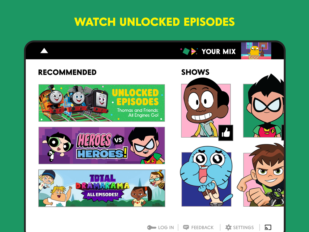 Pick the shows you like, and we’ll start playing your favorite cartoons as soon as you open the app. Add more shows to your list at any time.