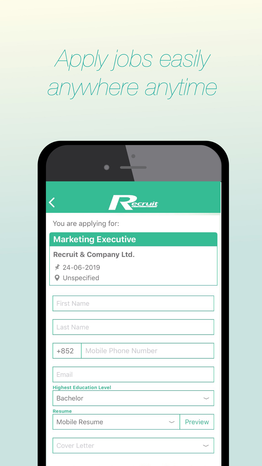Recruit is the all-rounded recruitment media in Hong Kong. Apart from recruitment magazine, website, social media fan pages and career expos, we introduce Recruit mobile application which is the user-friendly apps for job seekers to do job searching in more convenient way.