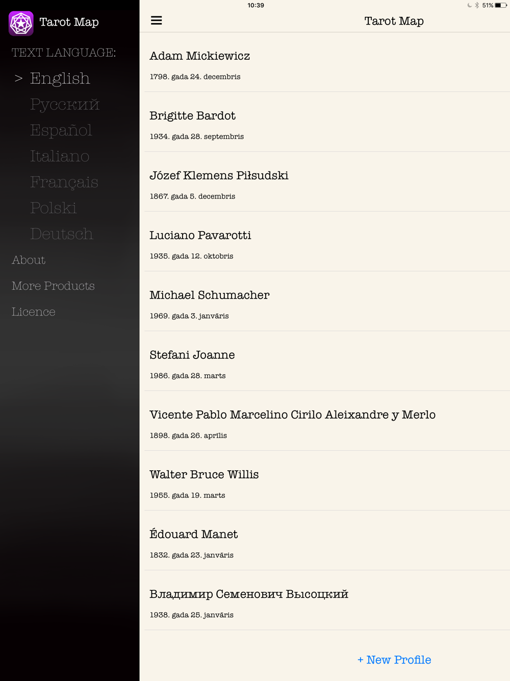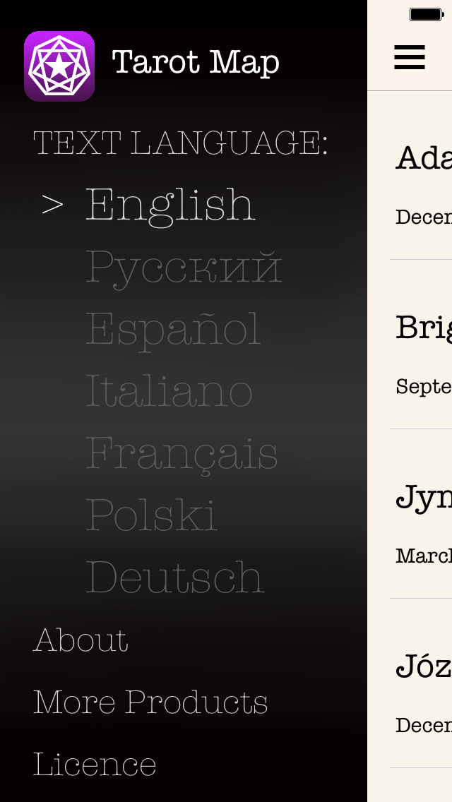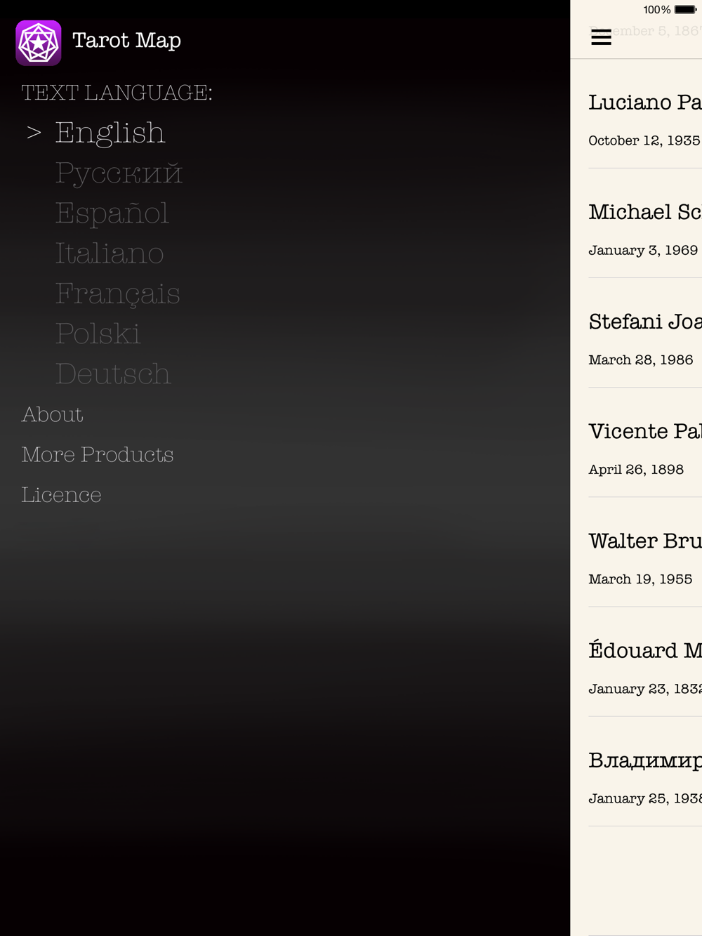 Welcome to TAROT MAP - application for iPad, iPhone and iPod Touch. It helps you better understand yourself, your family and friends.