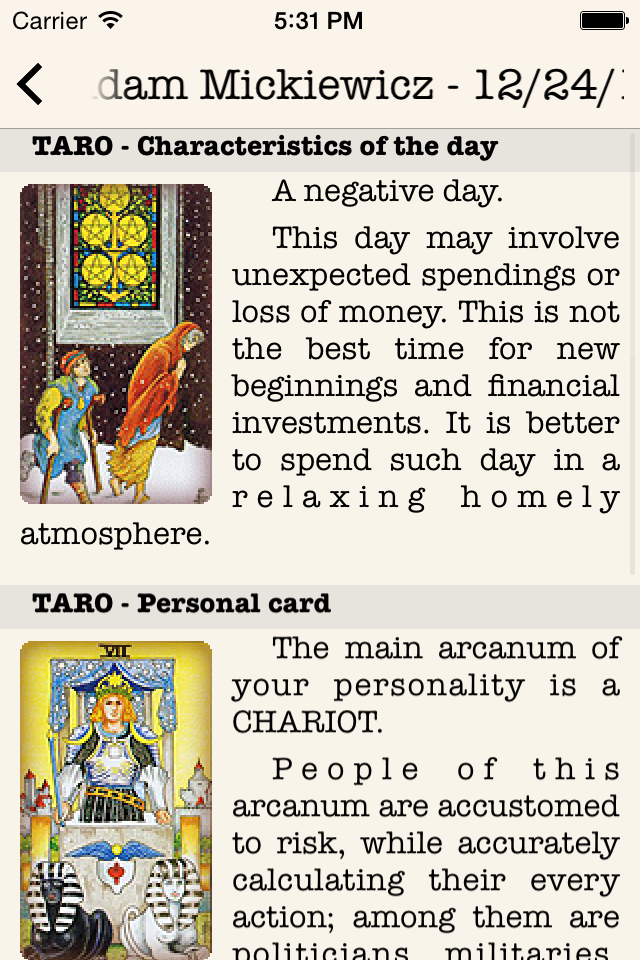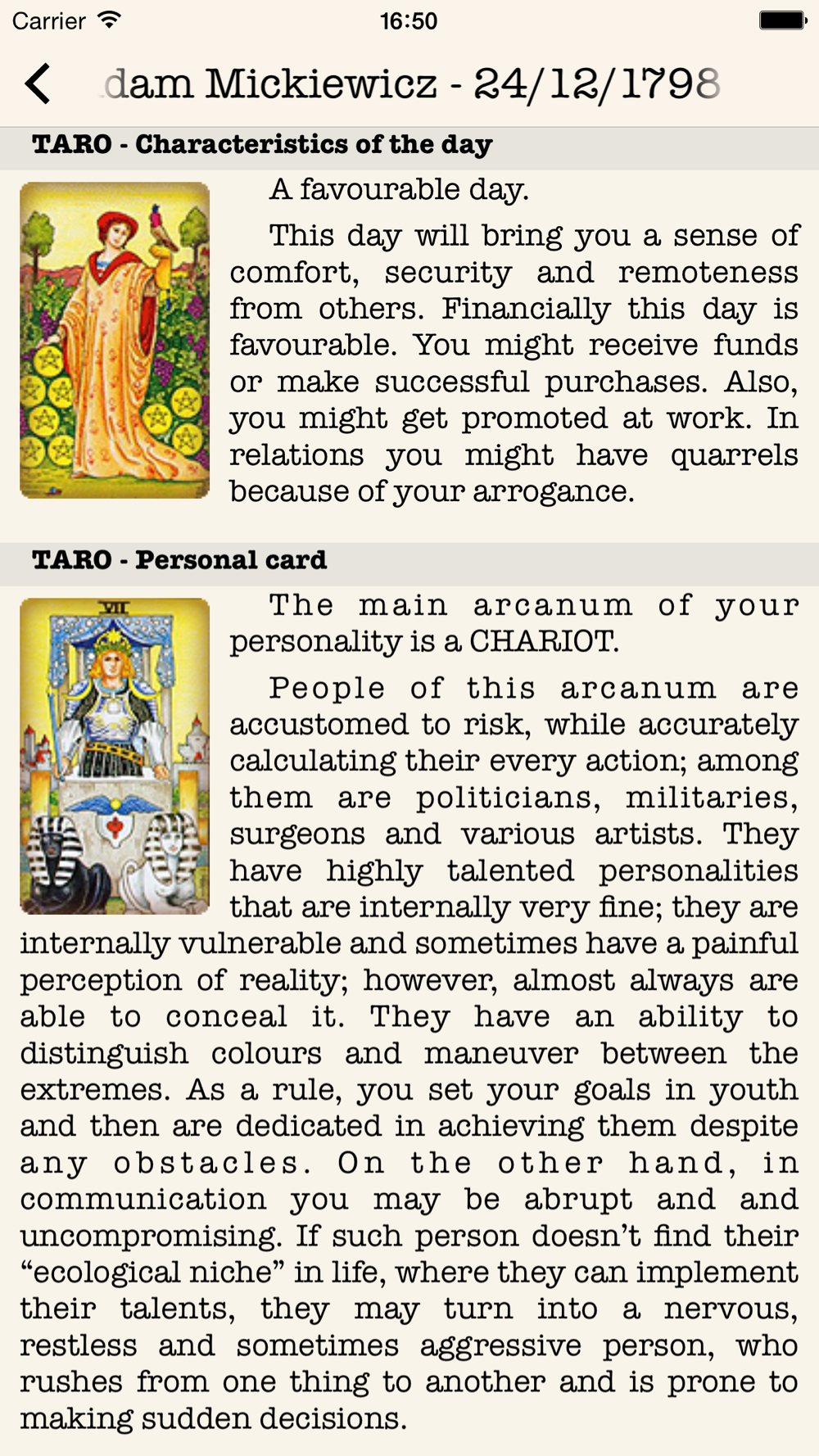 TAROT MAP points out important days of your life, tells about your future, and it also helps to deal with different problems in your life.