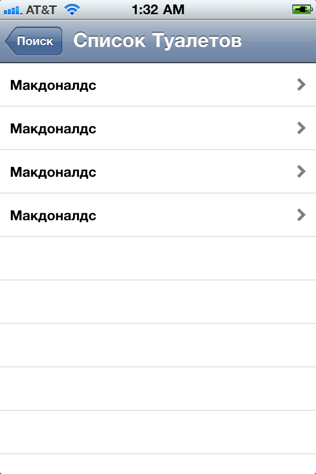 There is a big problem in Moscow to find a public restroom. You can't just ask people on the street where to find nearest restroom and internet is not always available. The M-Toilet app is designed to solve this problem. It provides you with a list of restrooms near every underground metro station in Moscow. And the most amazing thing is that you don't need internet connection. All data is stored on your iPhone/iPod touch. Isn't it amazing?! The current first version of the app includes information about more than a 100 restrooms located in Moscow McDonald's.