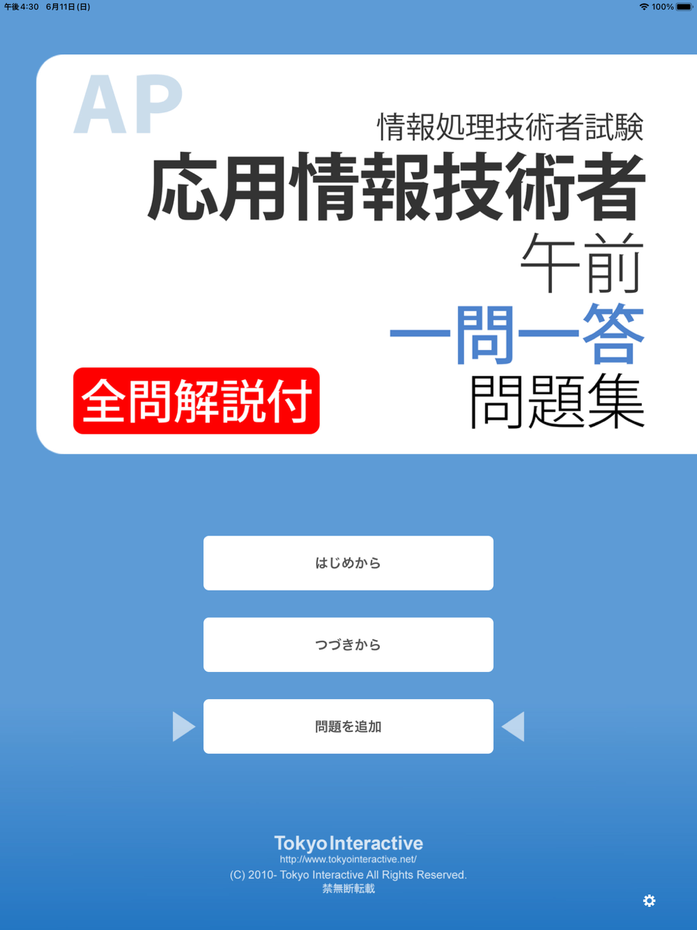 And now, full version upgrade via In-App Purchase is available. With the upgrade, many questions and the random mode function will be added. These will be very helpful for you to pass the certification.