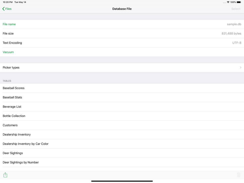 Private DB lets you load and view databases on your mobile devices. You can import CSV or tab-delimited text files from the web, email, Dropbox, or share them from iTunes into tables in your database.