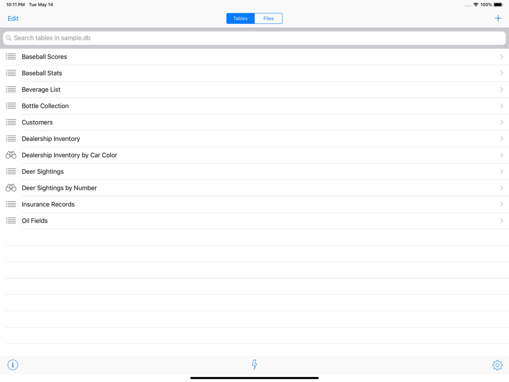 NOTE: You can view and sort and search tables with this app, but cannot add, edit or delete rows. To do that, please use General DB.
