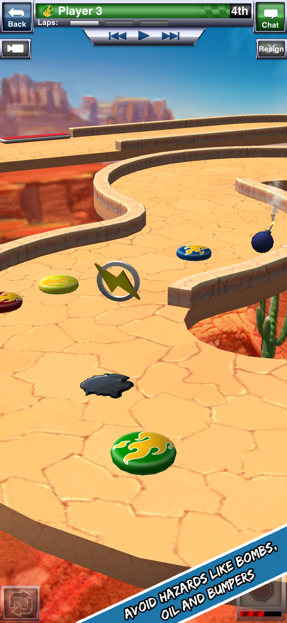 • Activate powers during your turn like turbo boost, bombs, and oil slicks