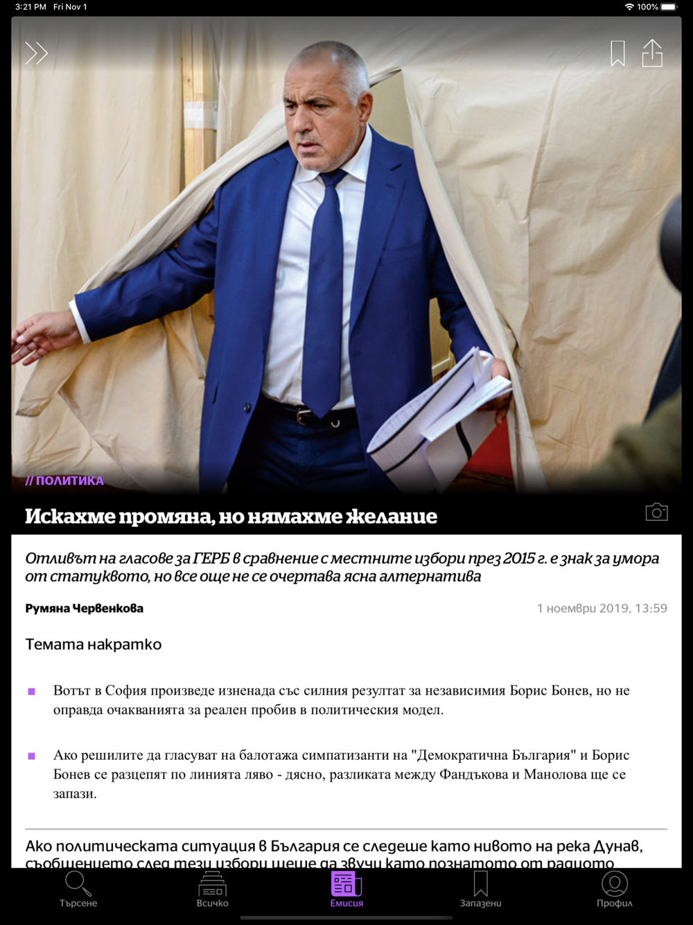 Business information delivered in two daily emissions - with the start of the business day and at its end, plus a special weekend emission and whenever breaking news updates are needed.