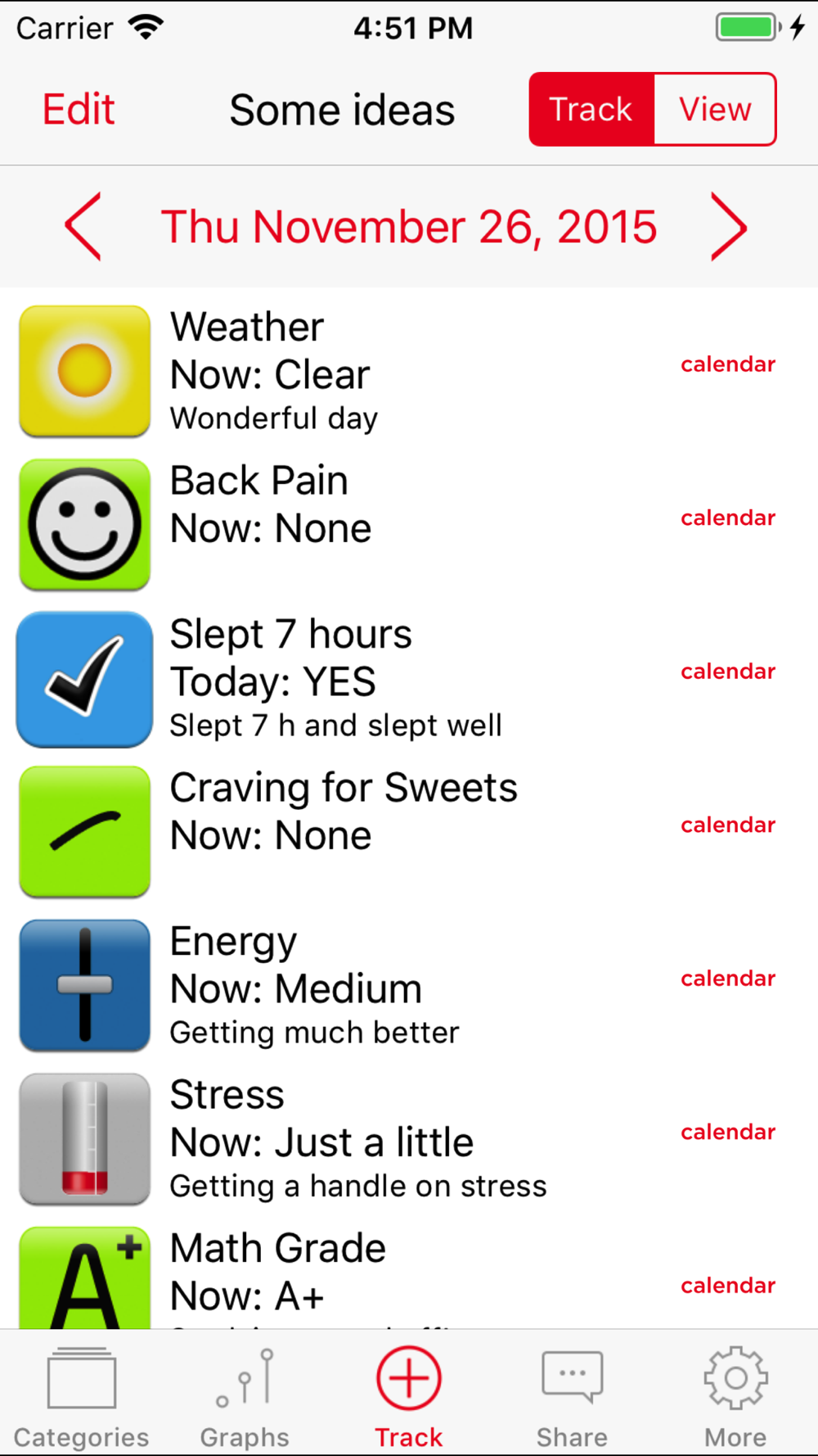 I love this app and have used it daily for a year now! I made a "work out" category so I can set goals for how many minutes I want to do each week of cardio, abs, arms, etc as well as how many days I want to exercise each week. I use that category the most but I made categories for work and home as well.